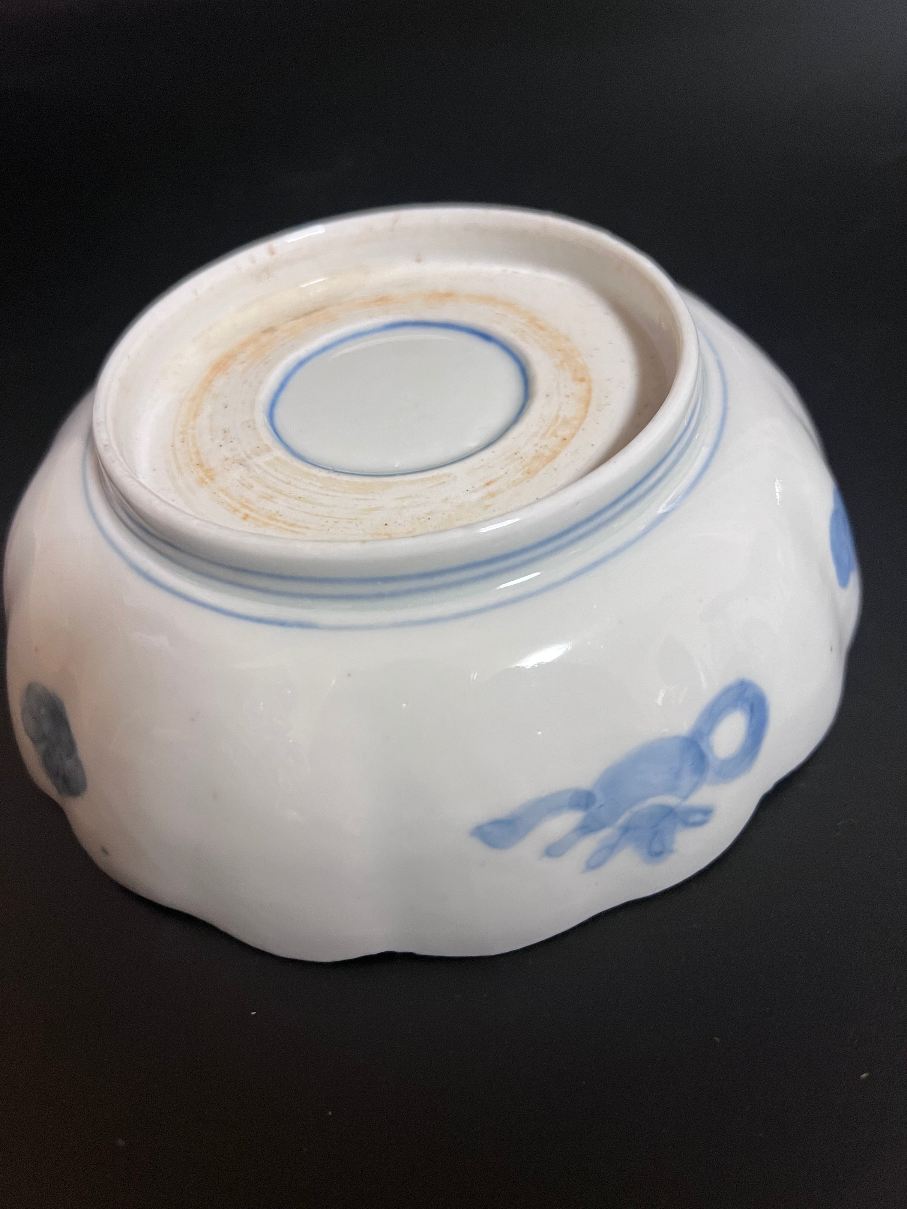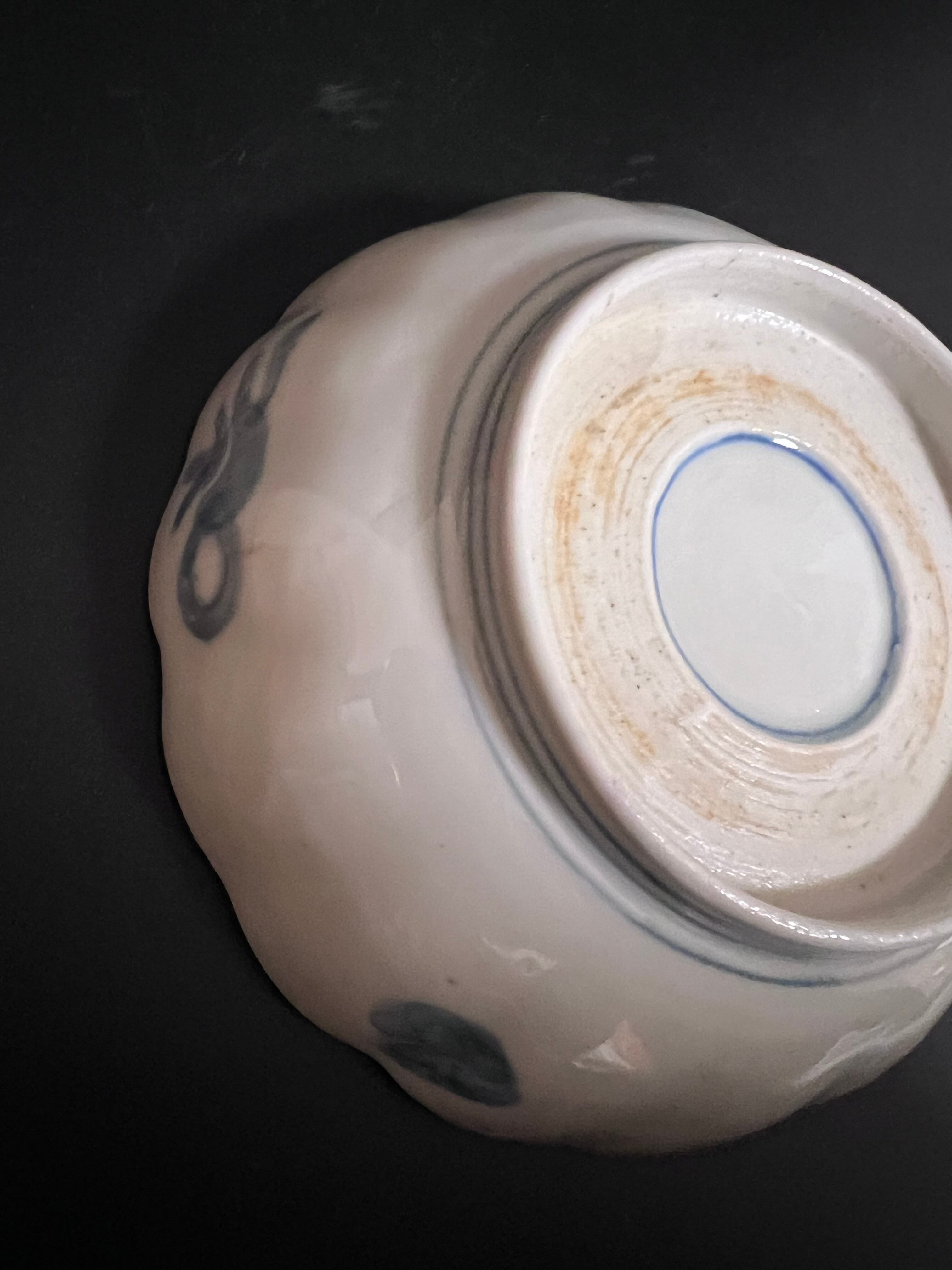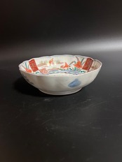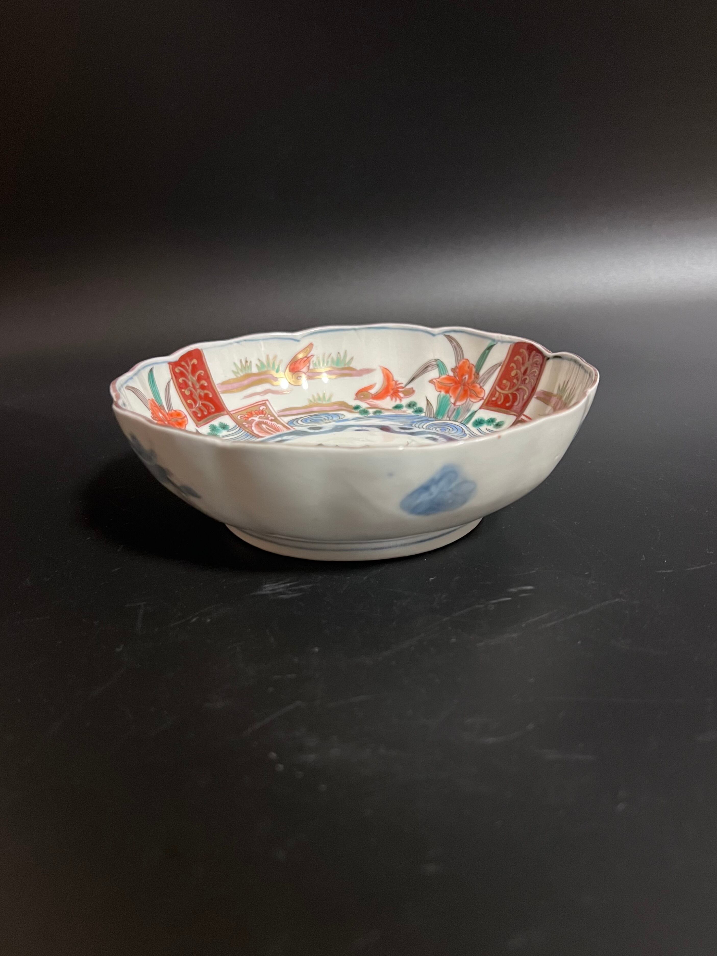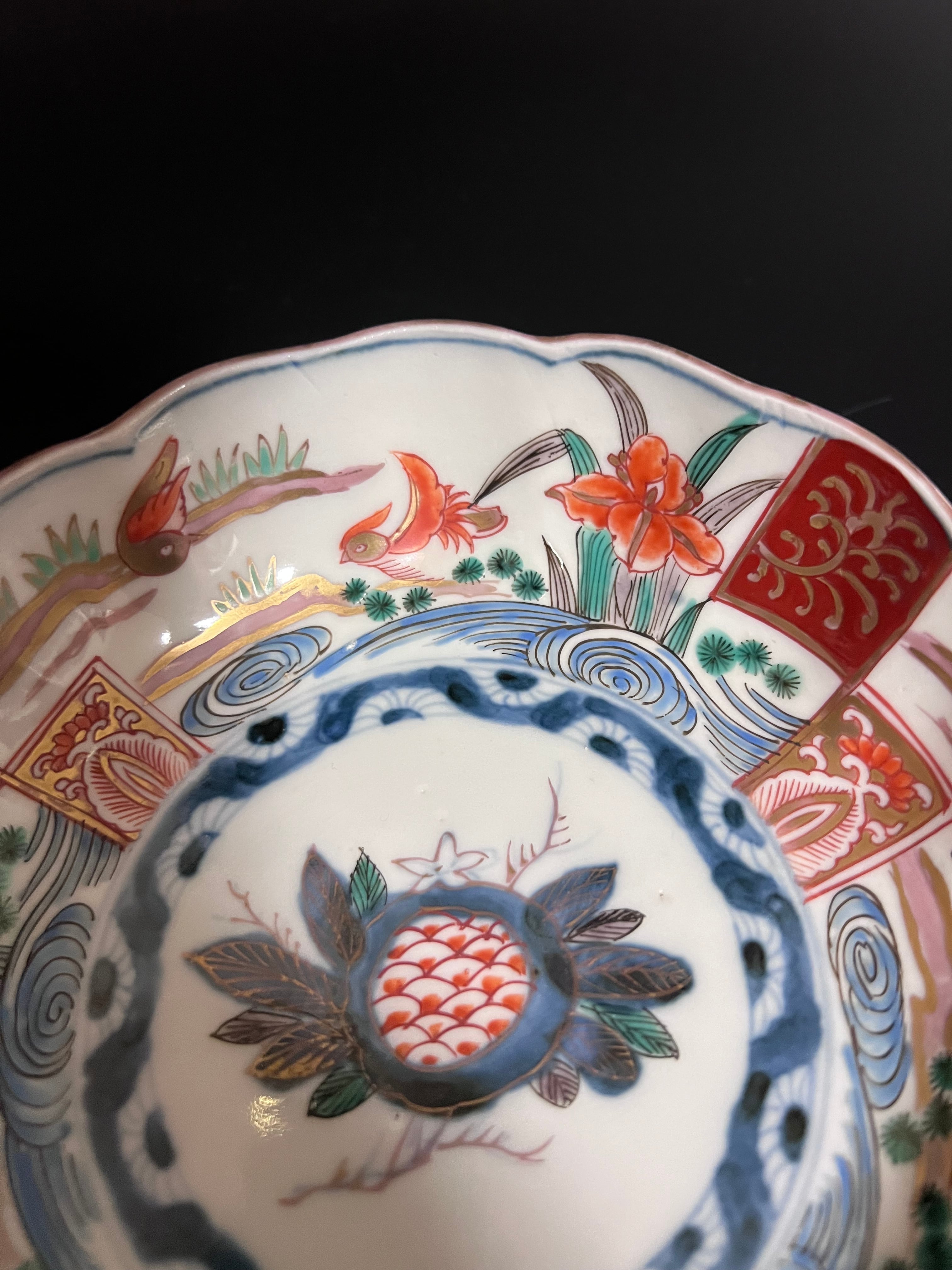 柘榴と鴛鴦(おしどり)が描かれた色絵のなます皿です。