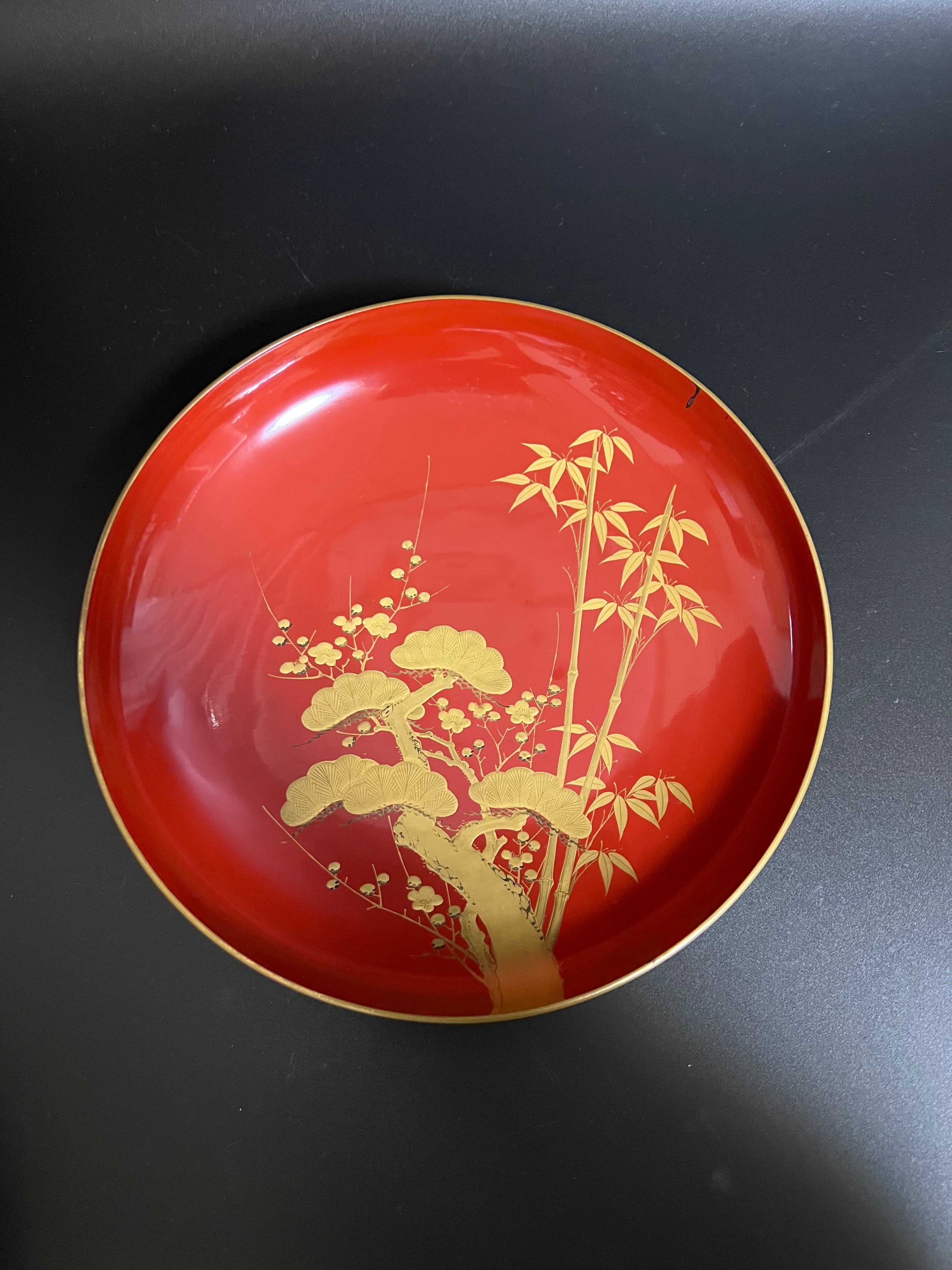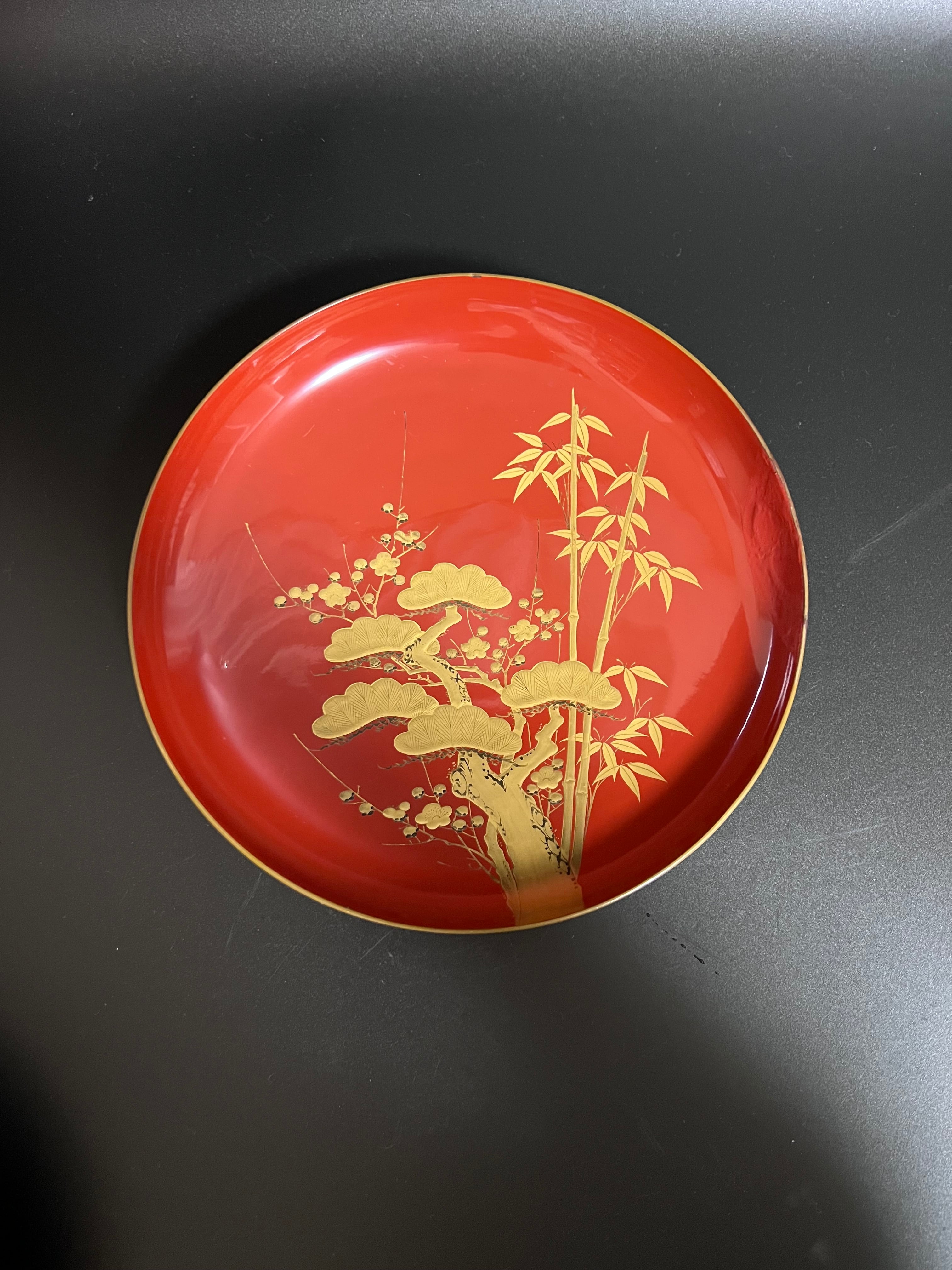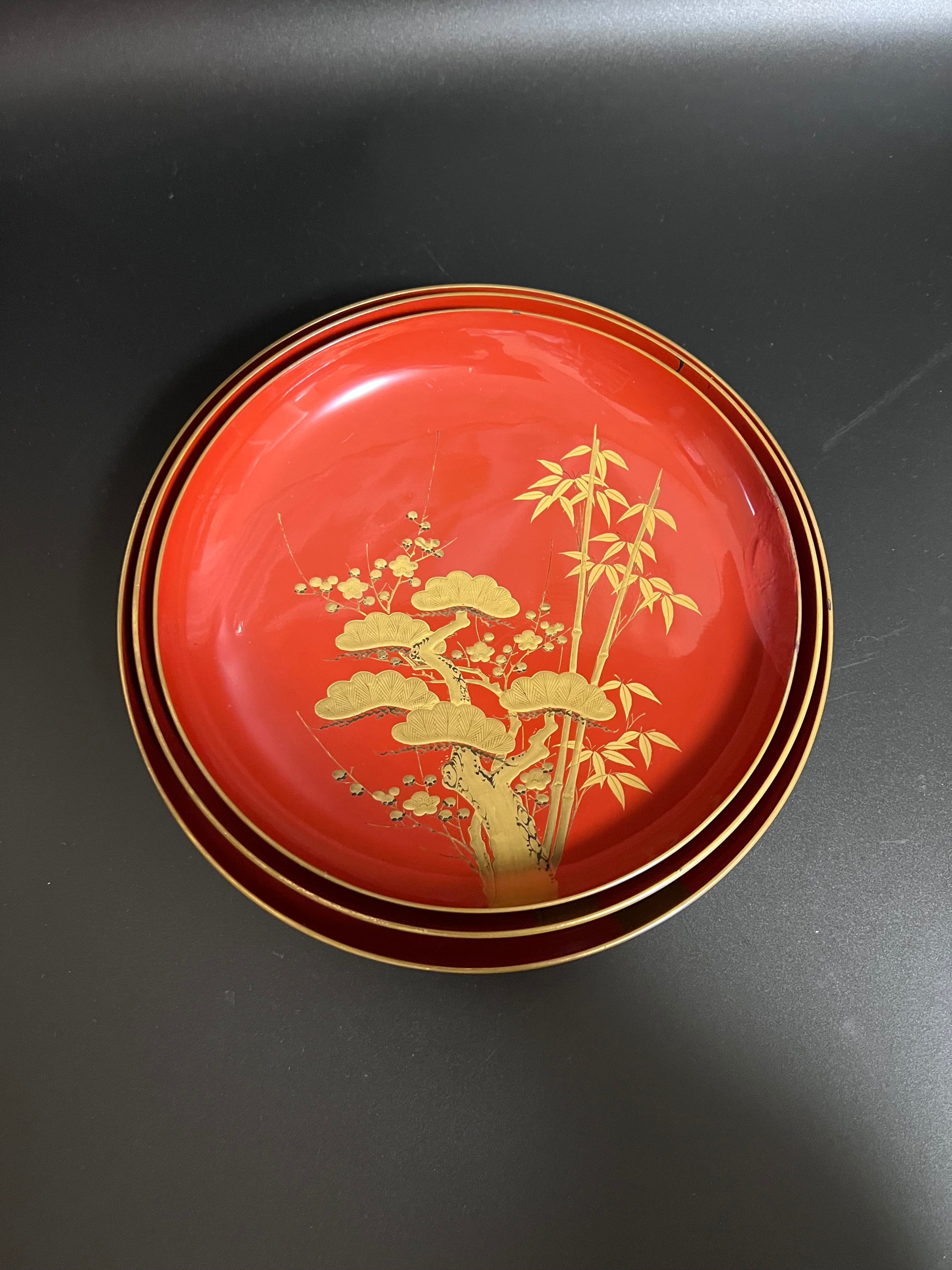 漆器 盃 松竹梅 大3枚セット 難あり