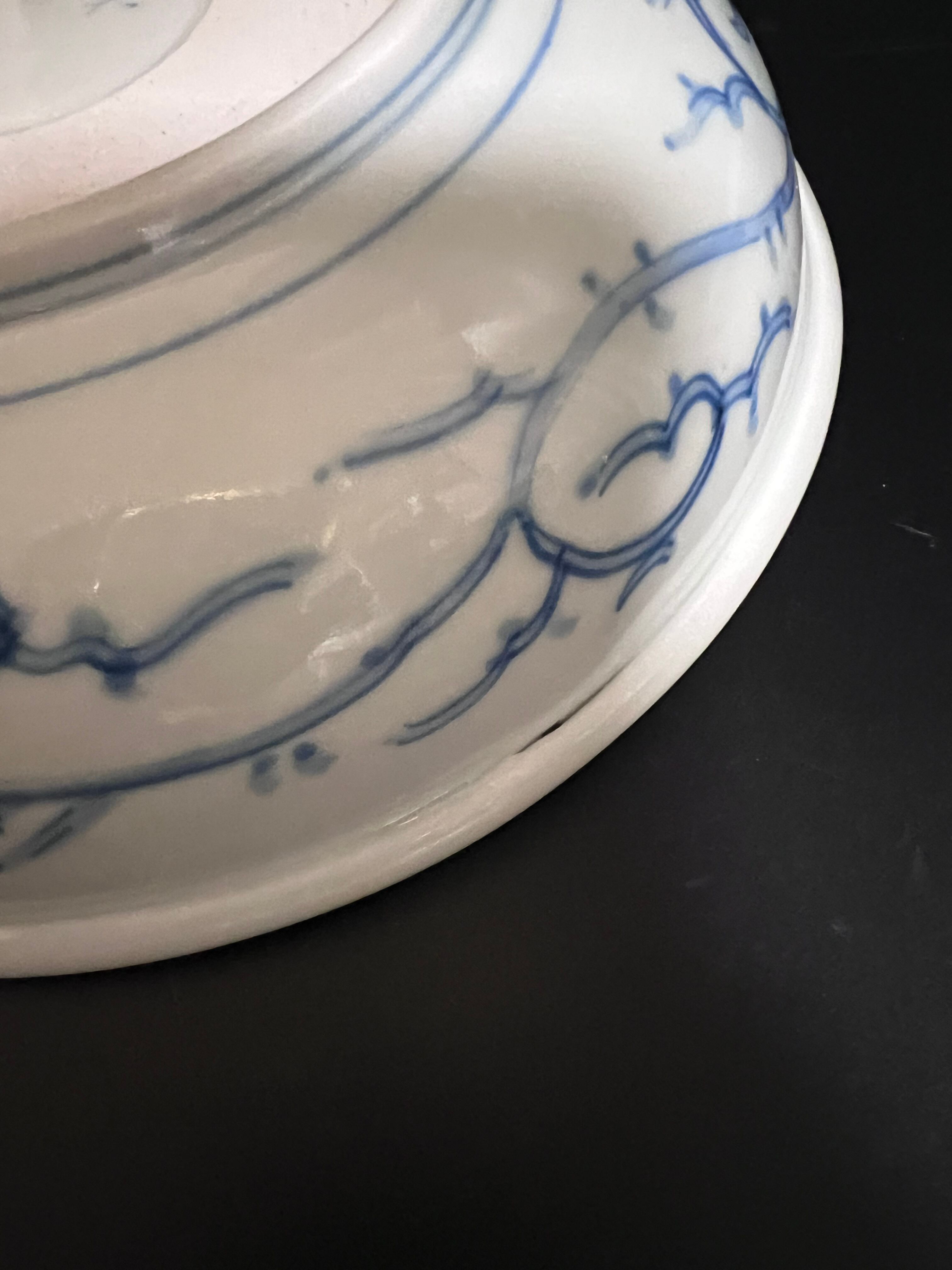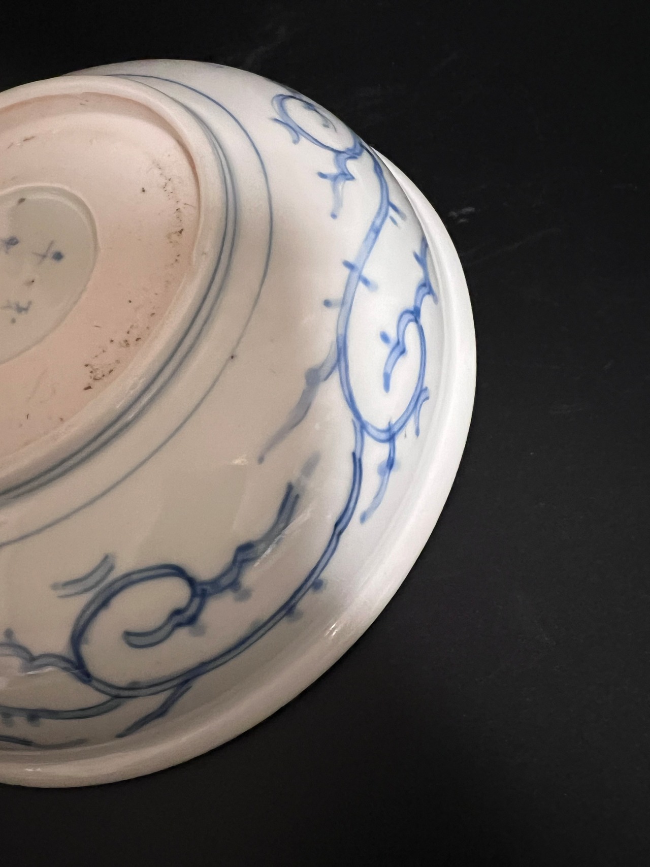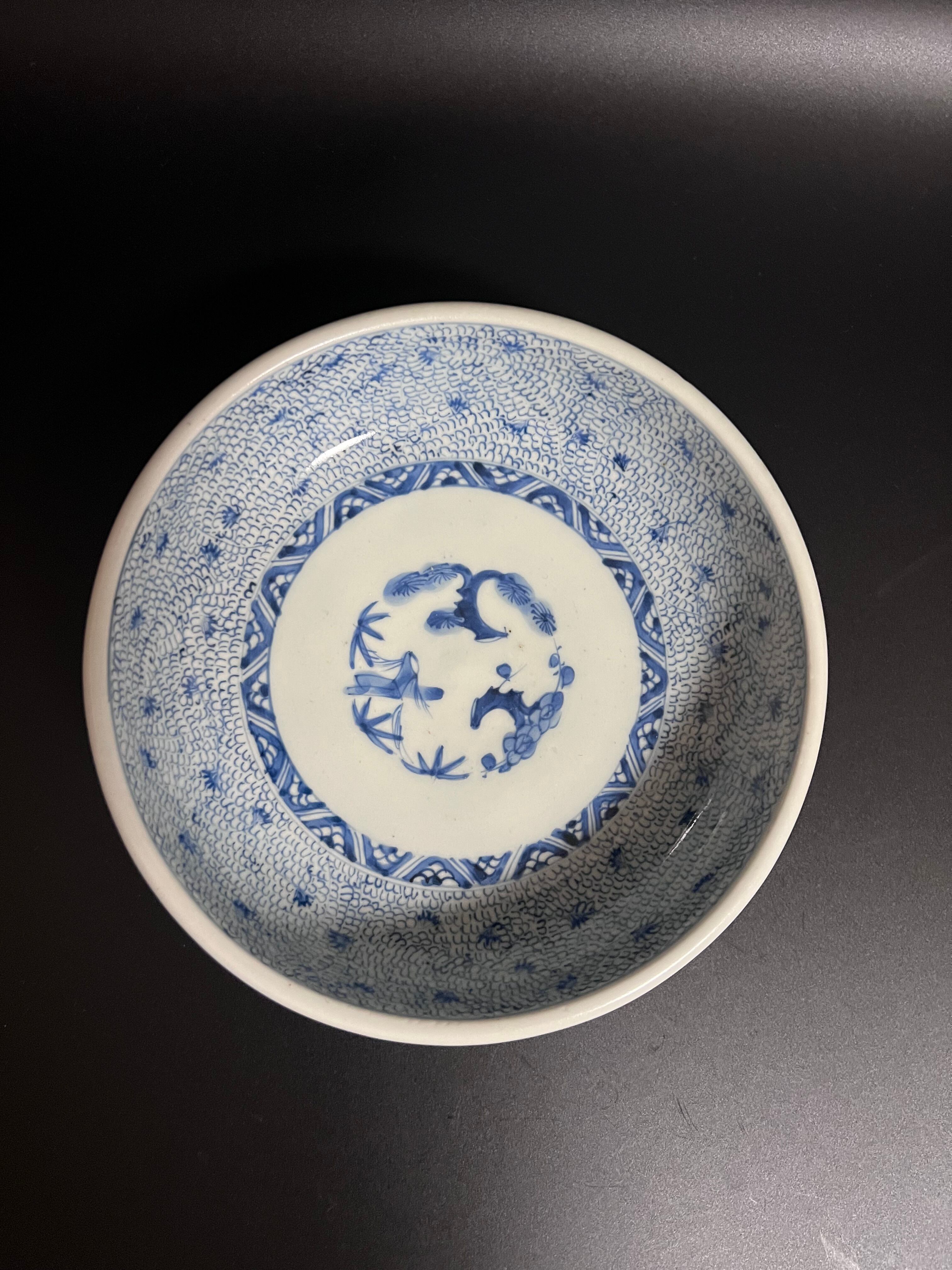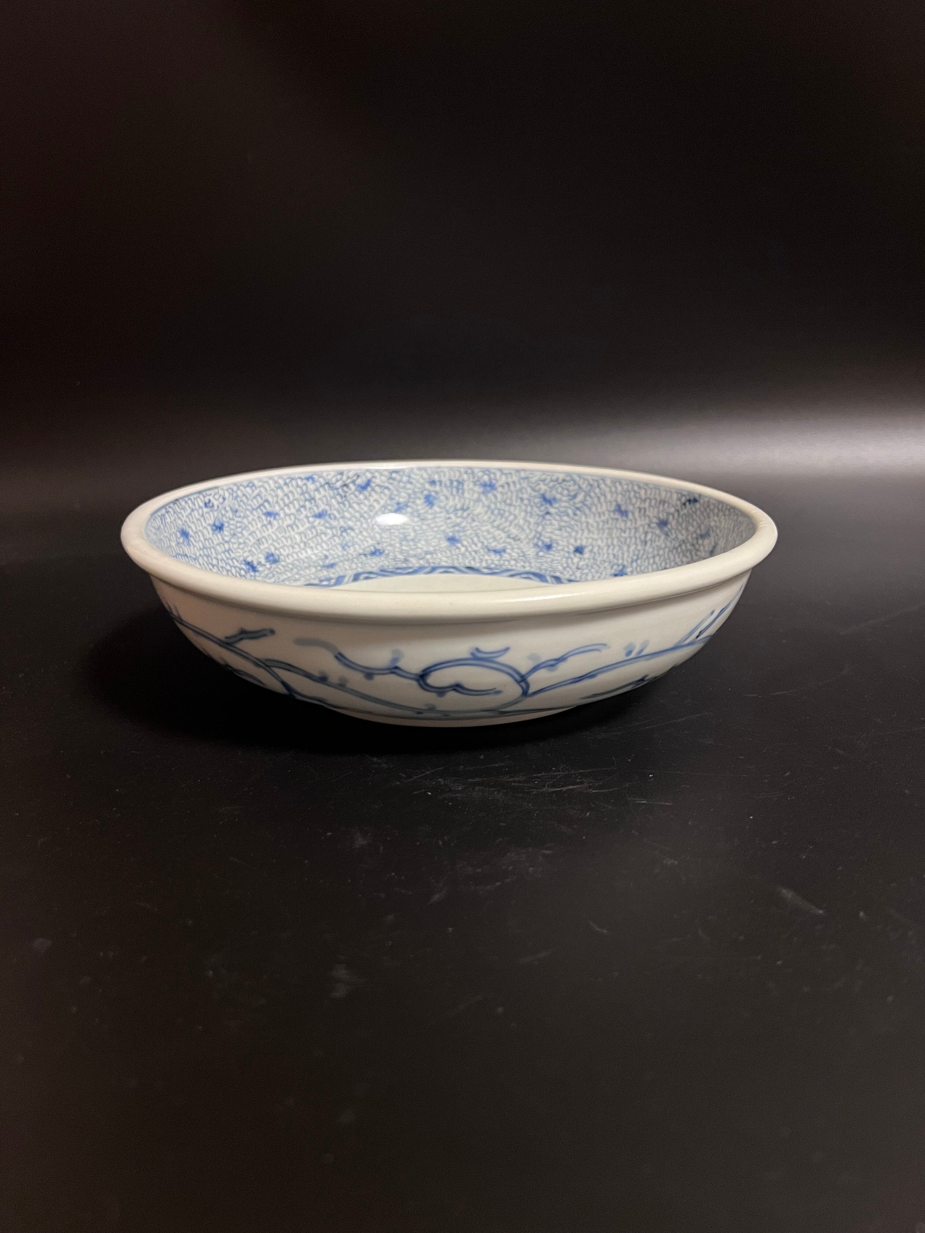 丁寧に描かれた微塵唐草が美しい染付の鉢です。