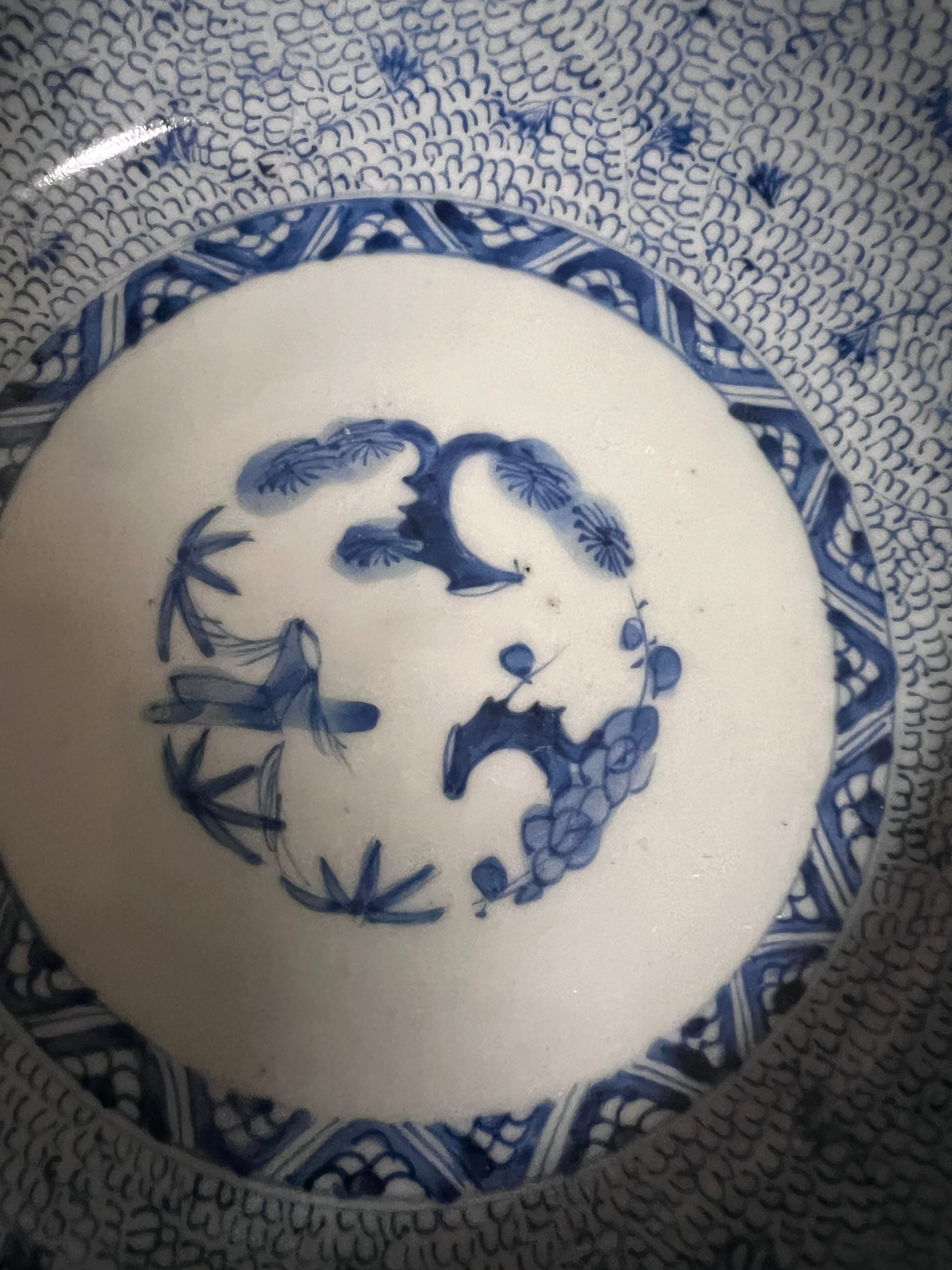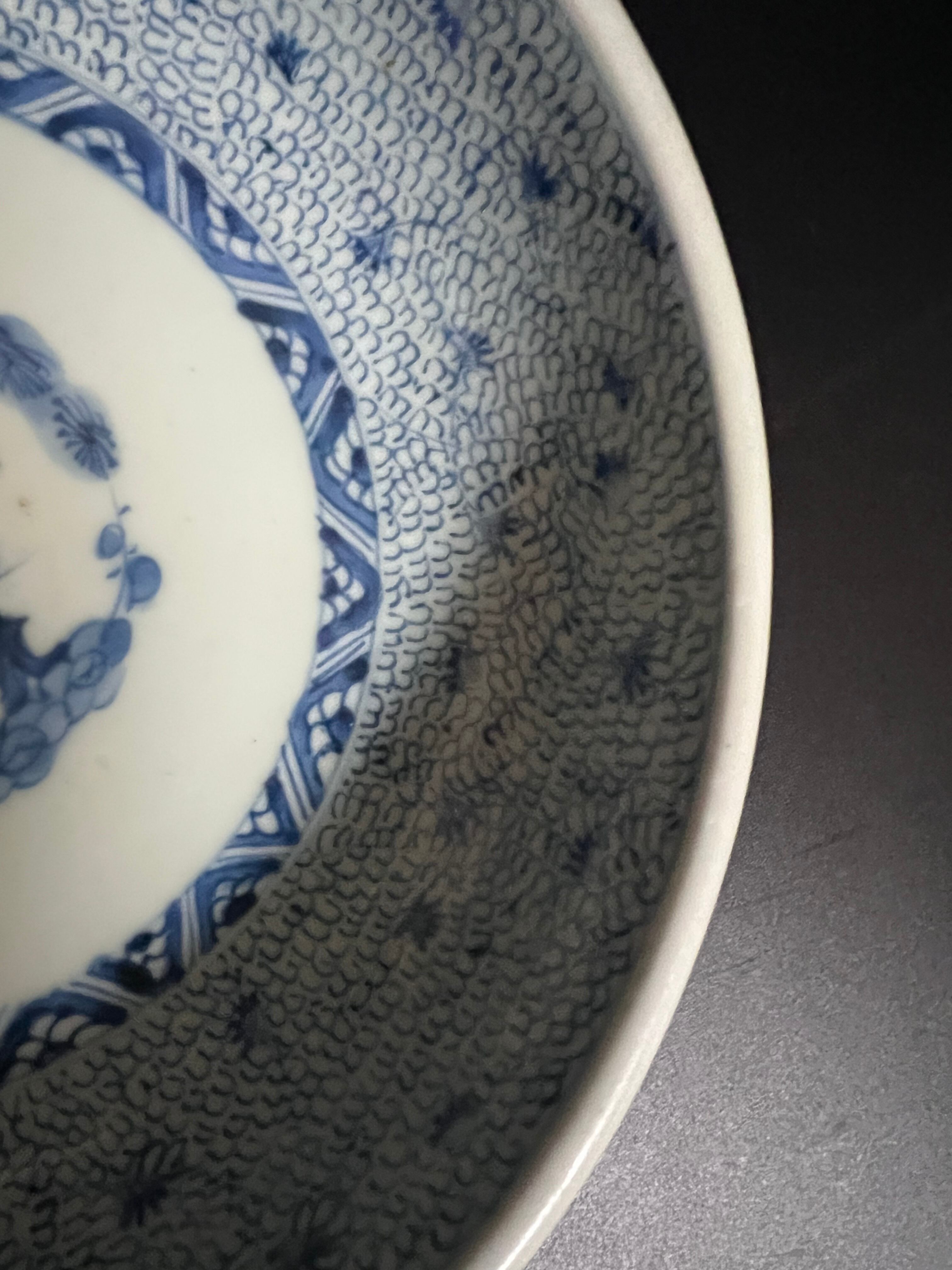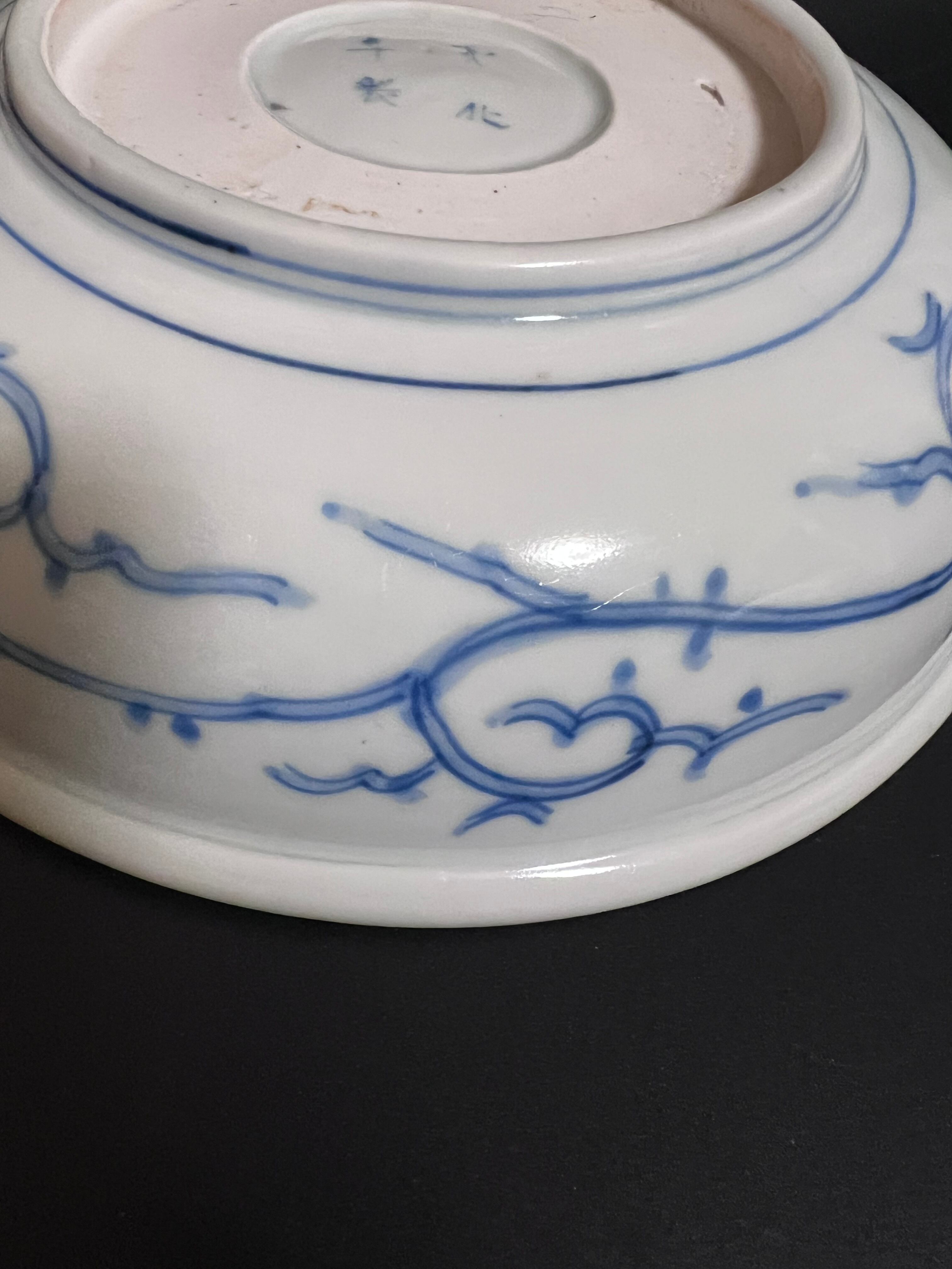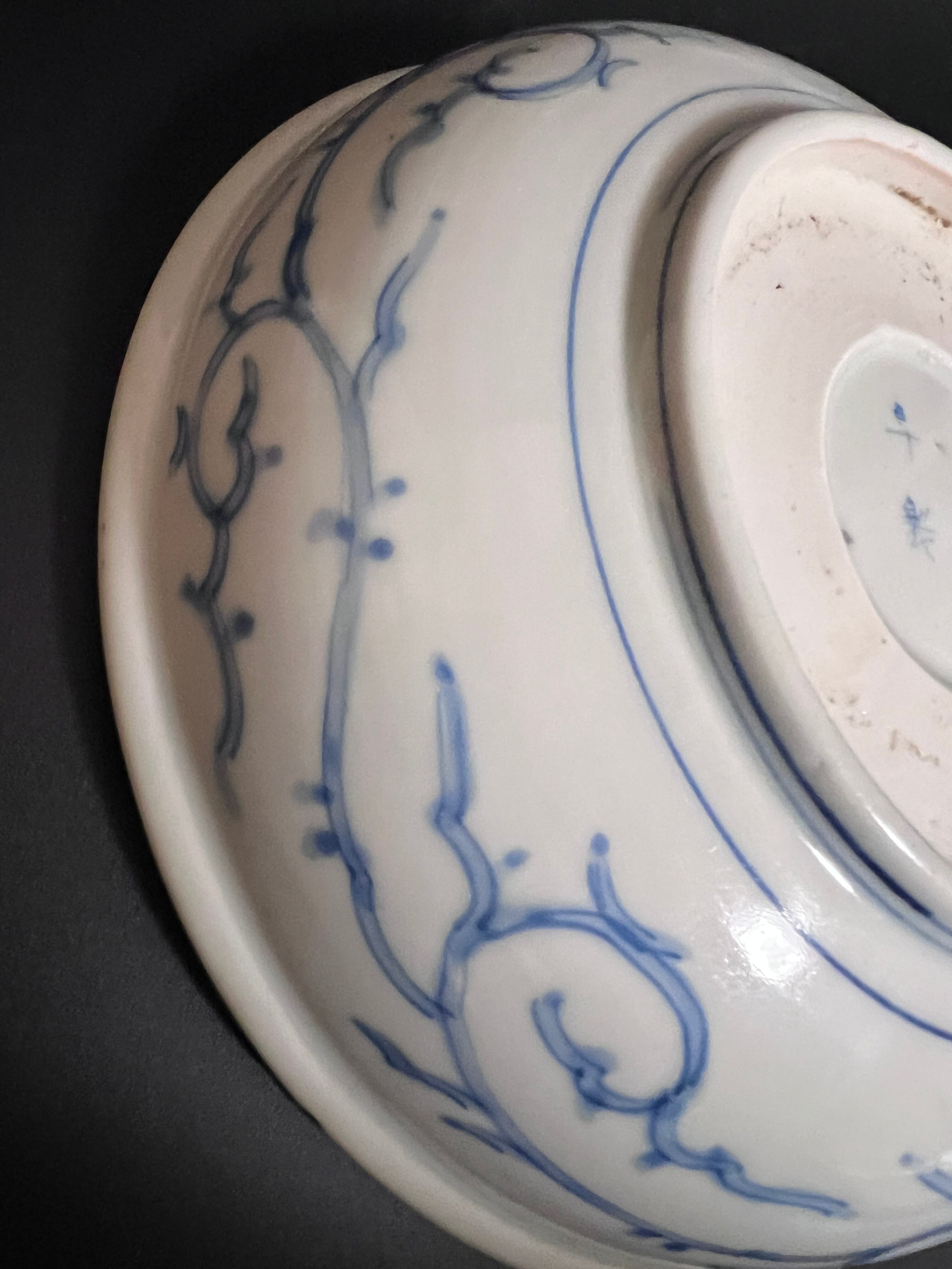 丁寧に描かれた微塵唐草が美しい染付の鉢です。