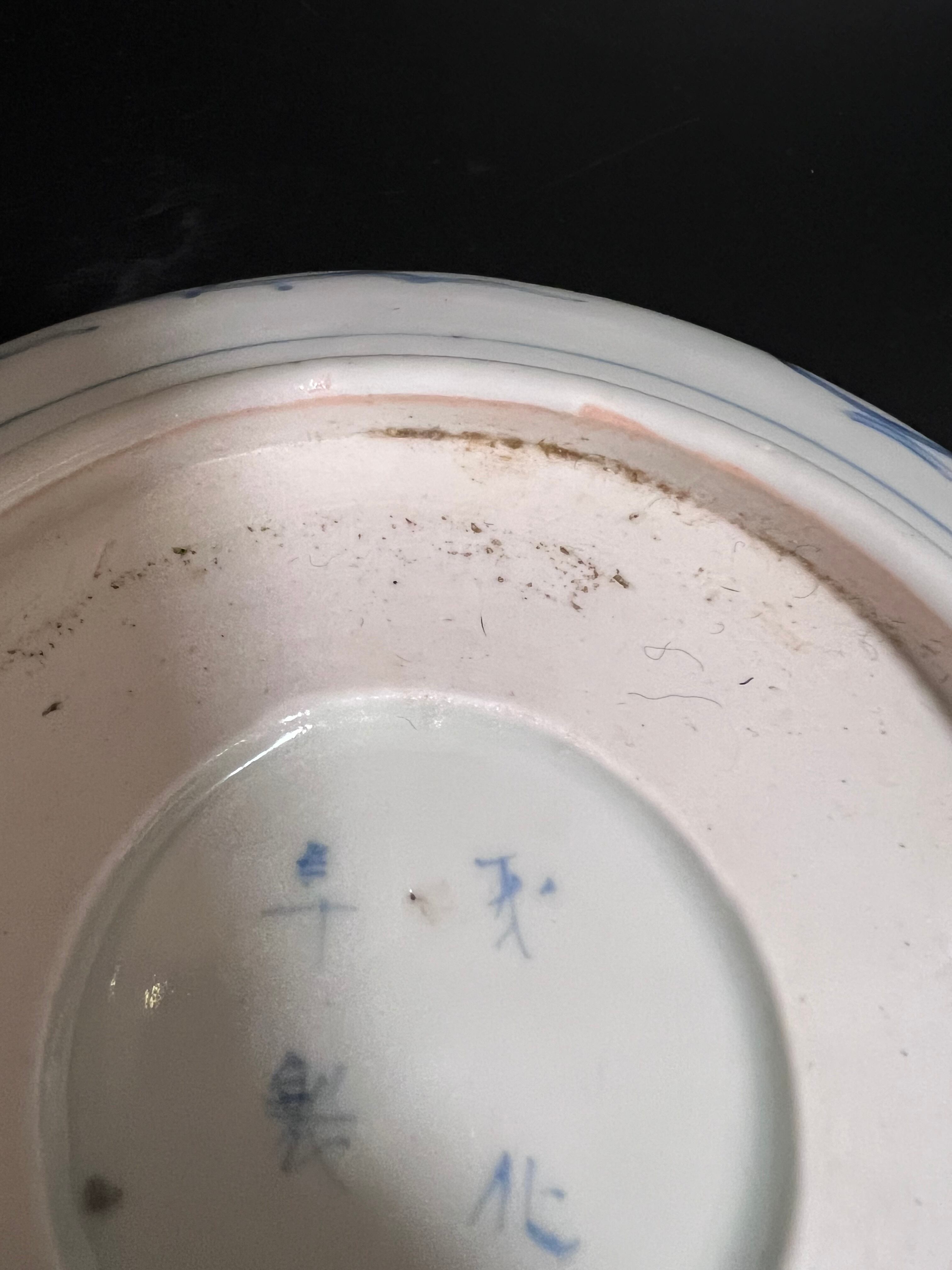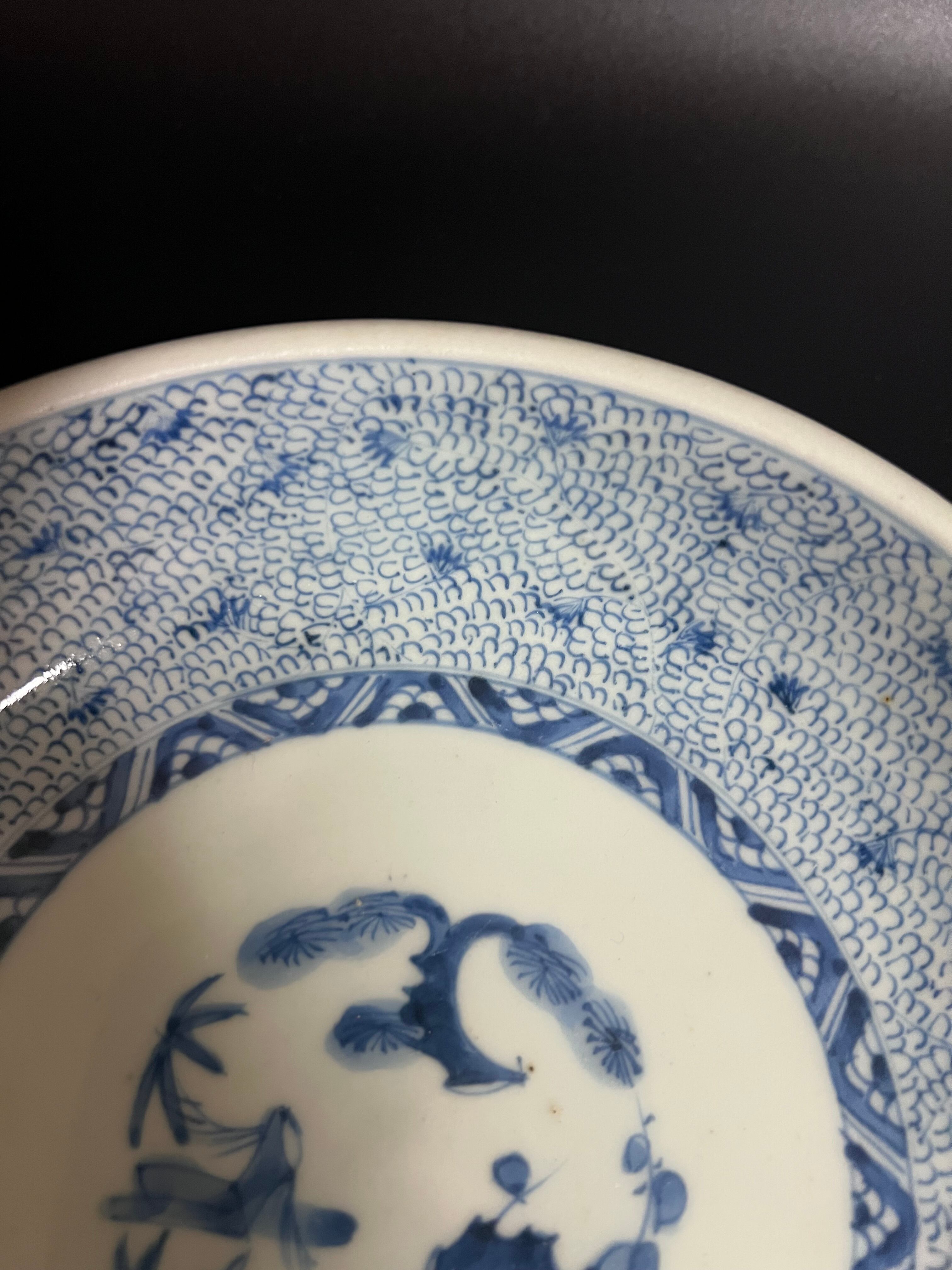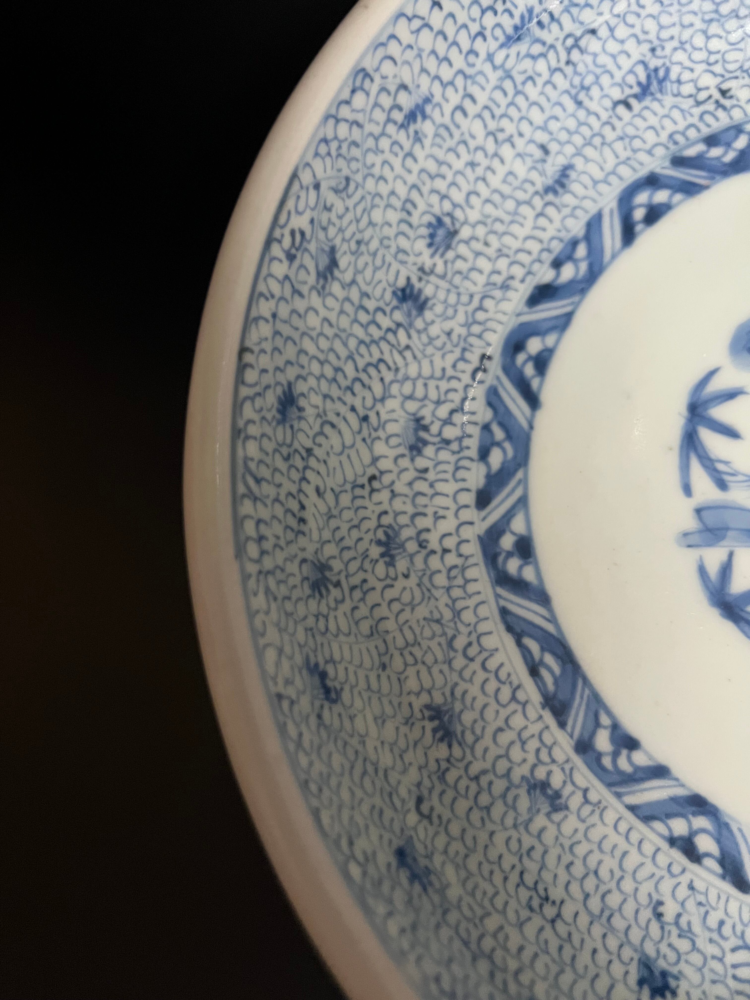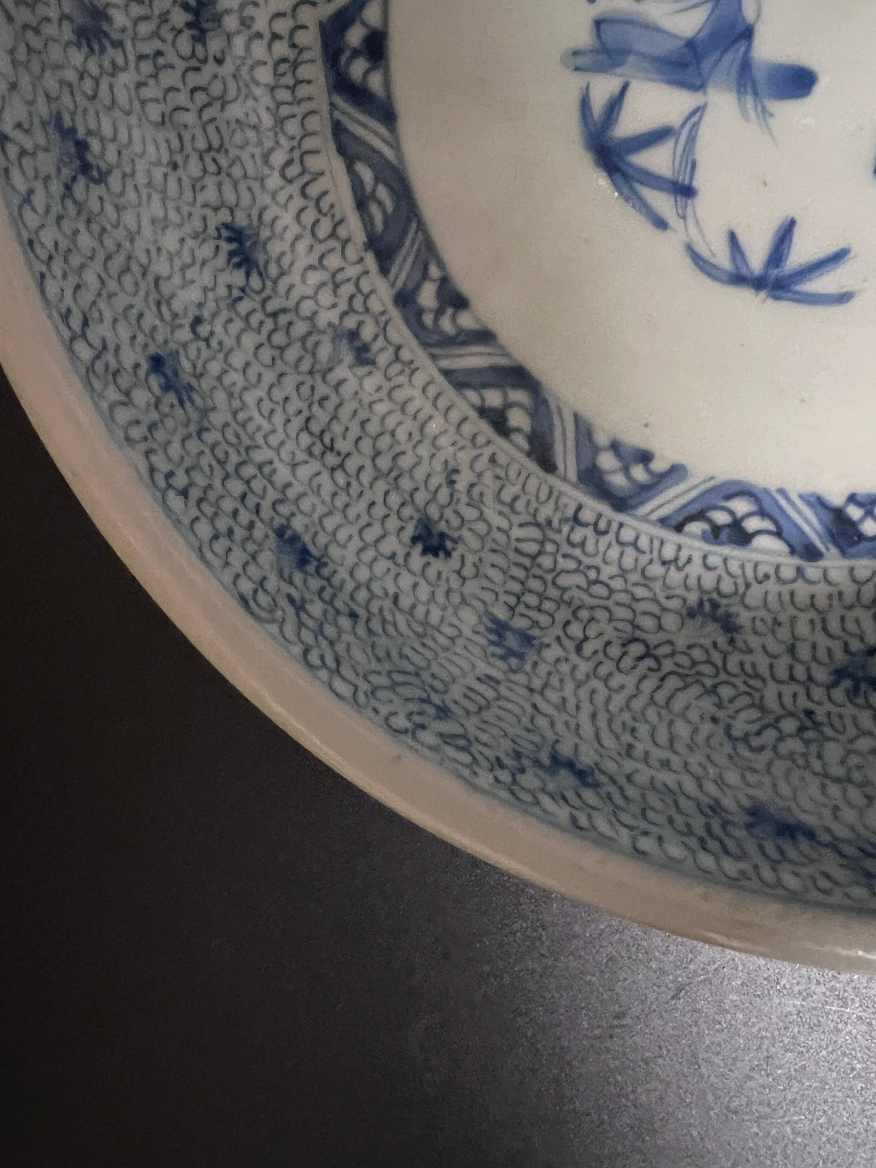 丁寧に描かれた微塵唐草が美しい染付の鉢です。