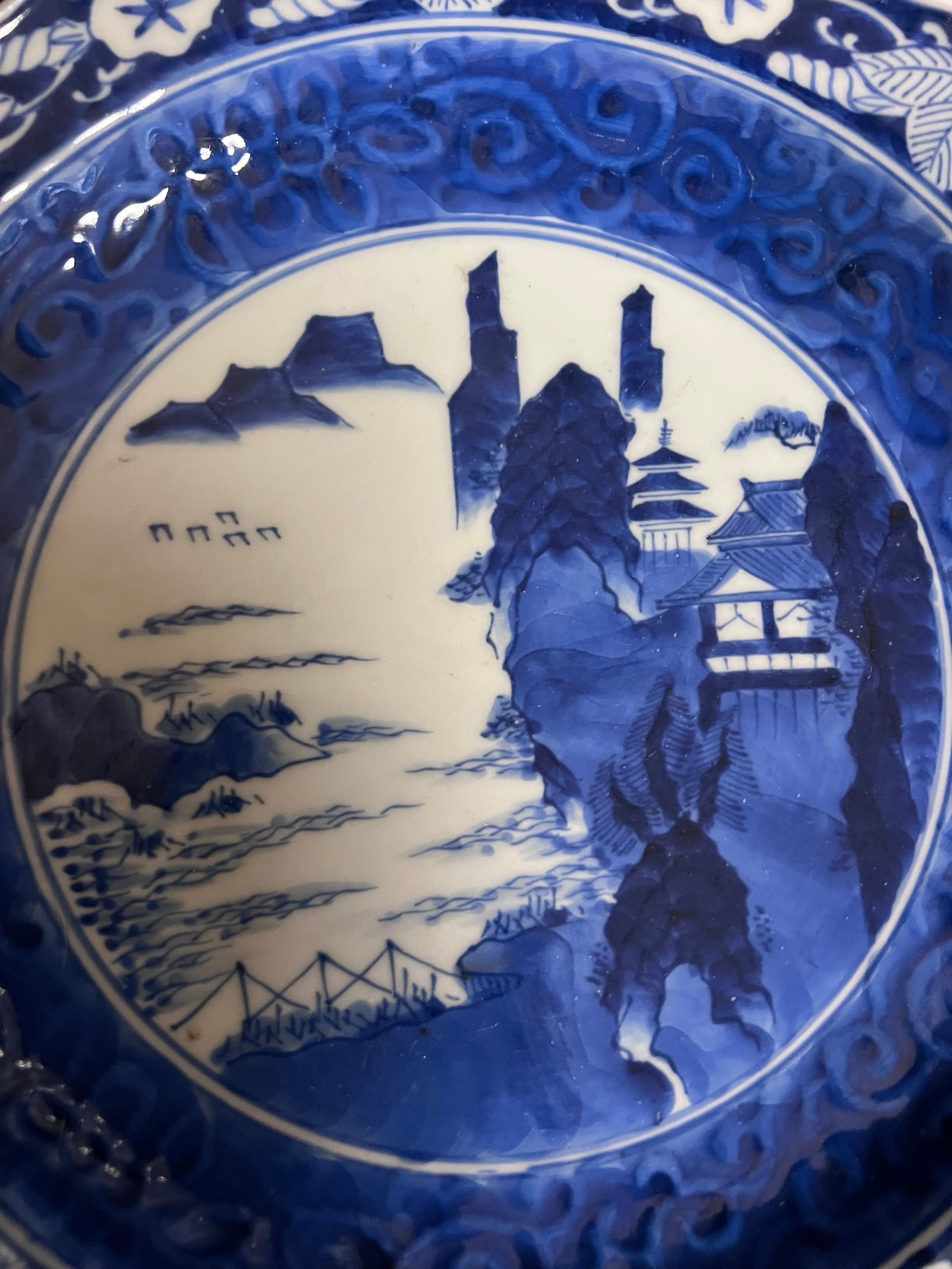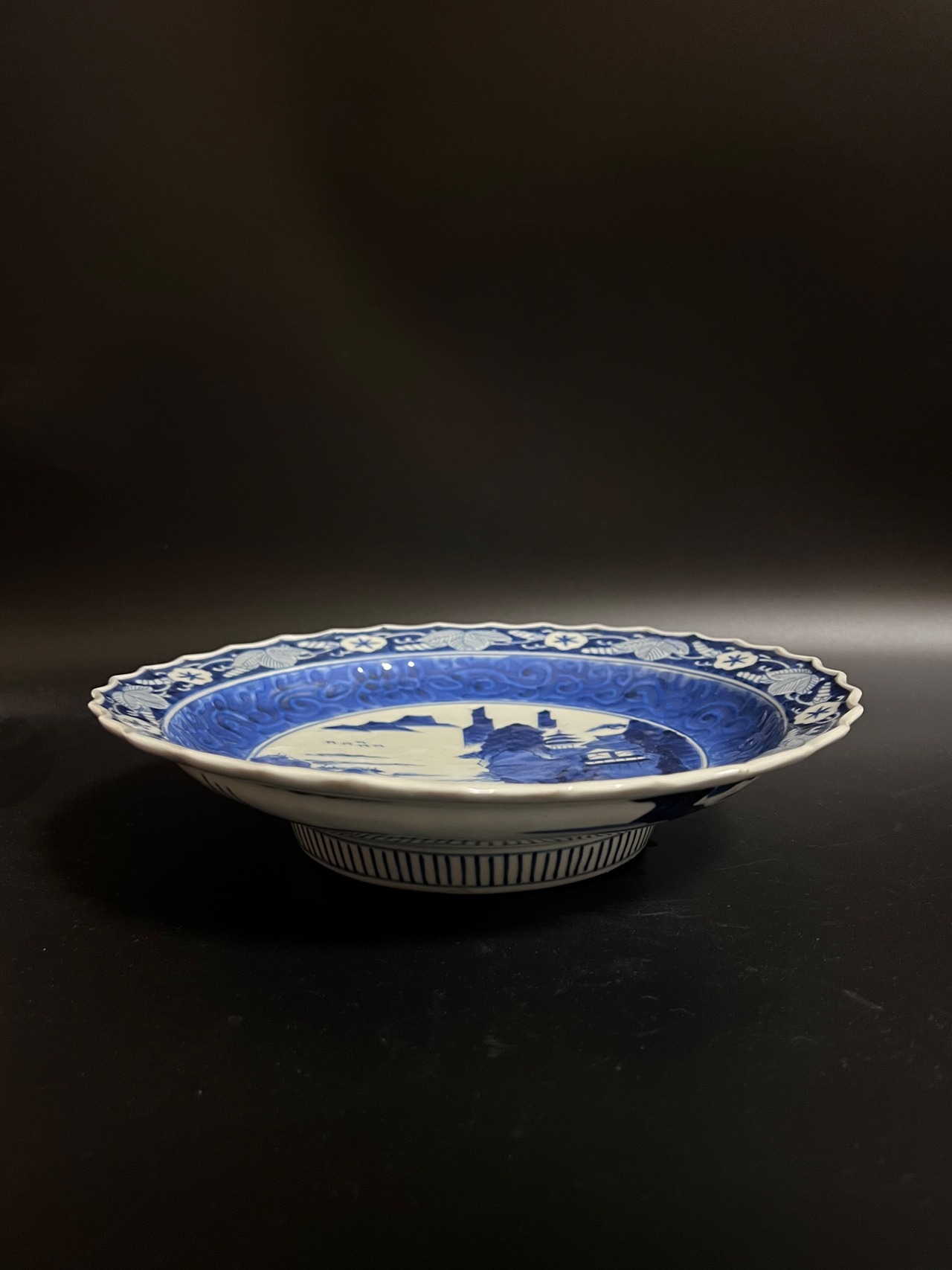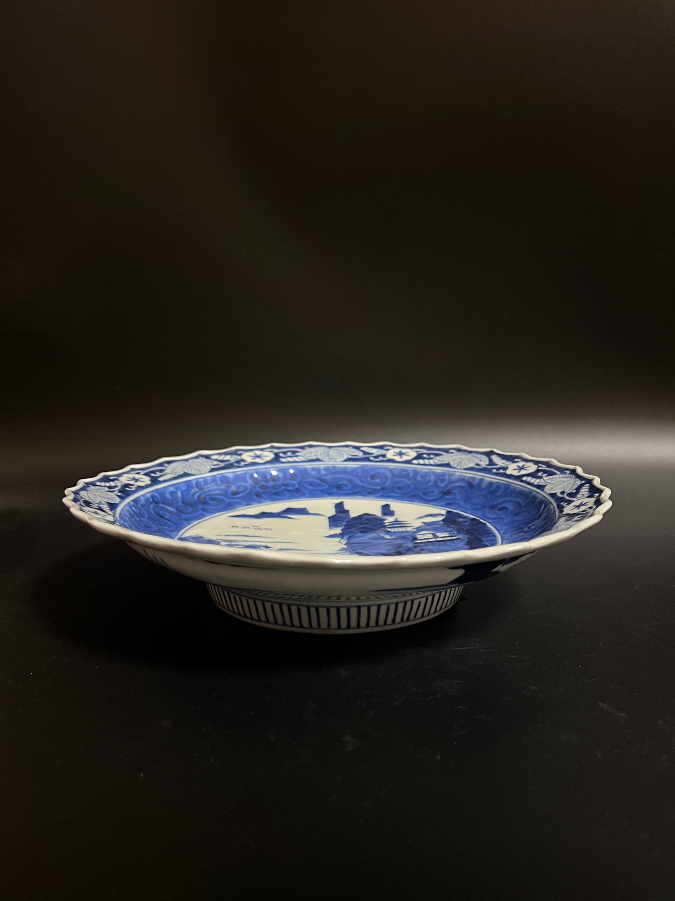 高台中皿 染付 山水図