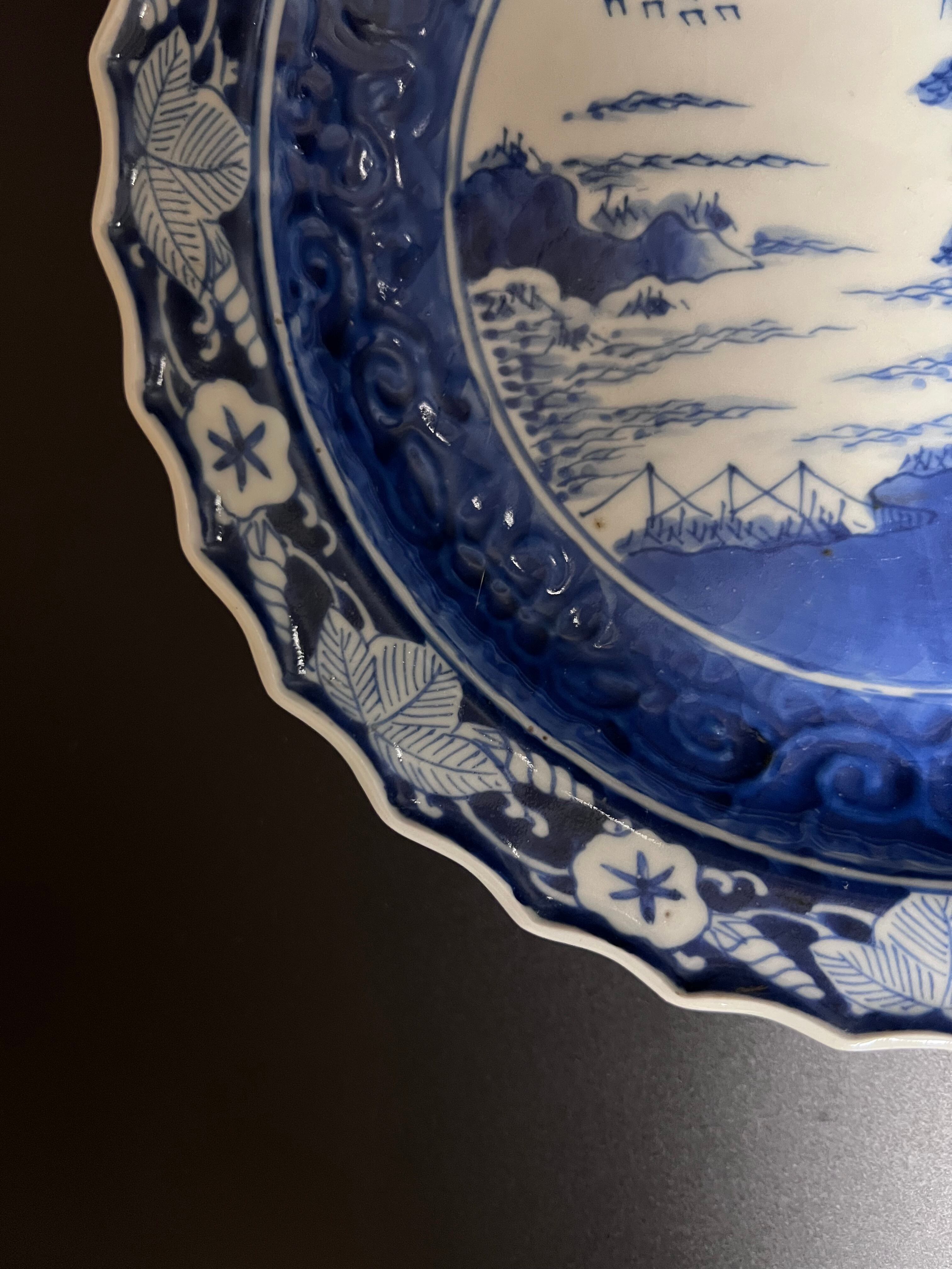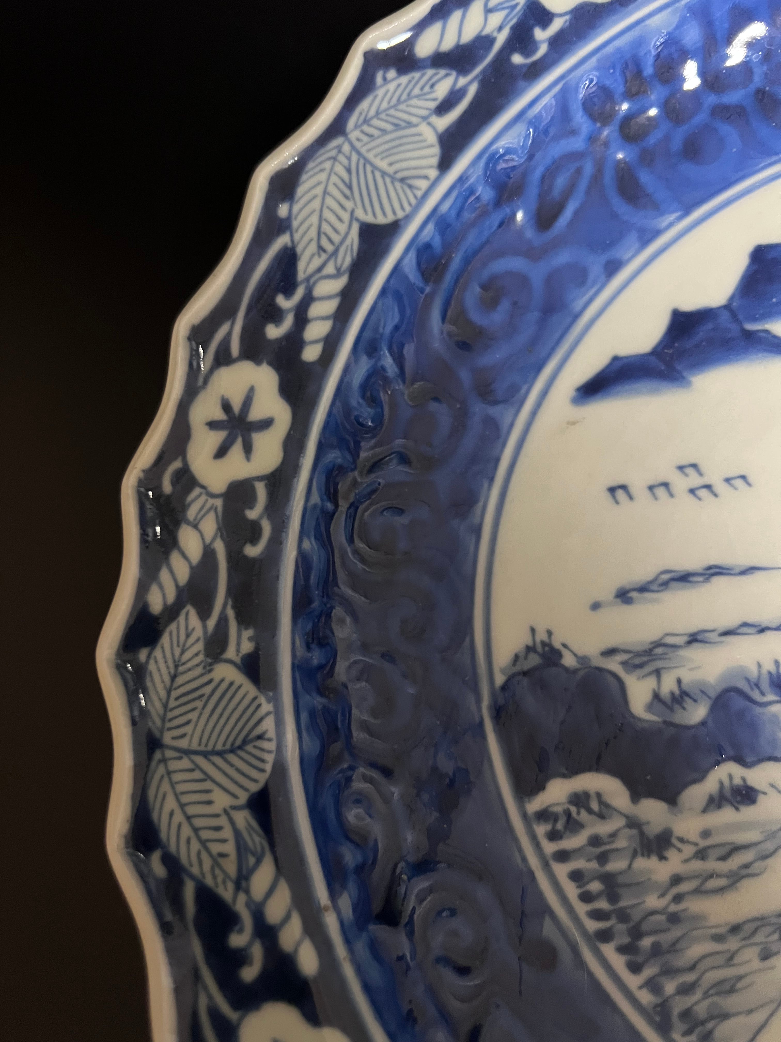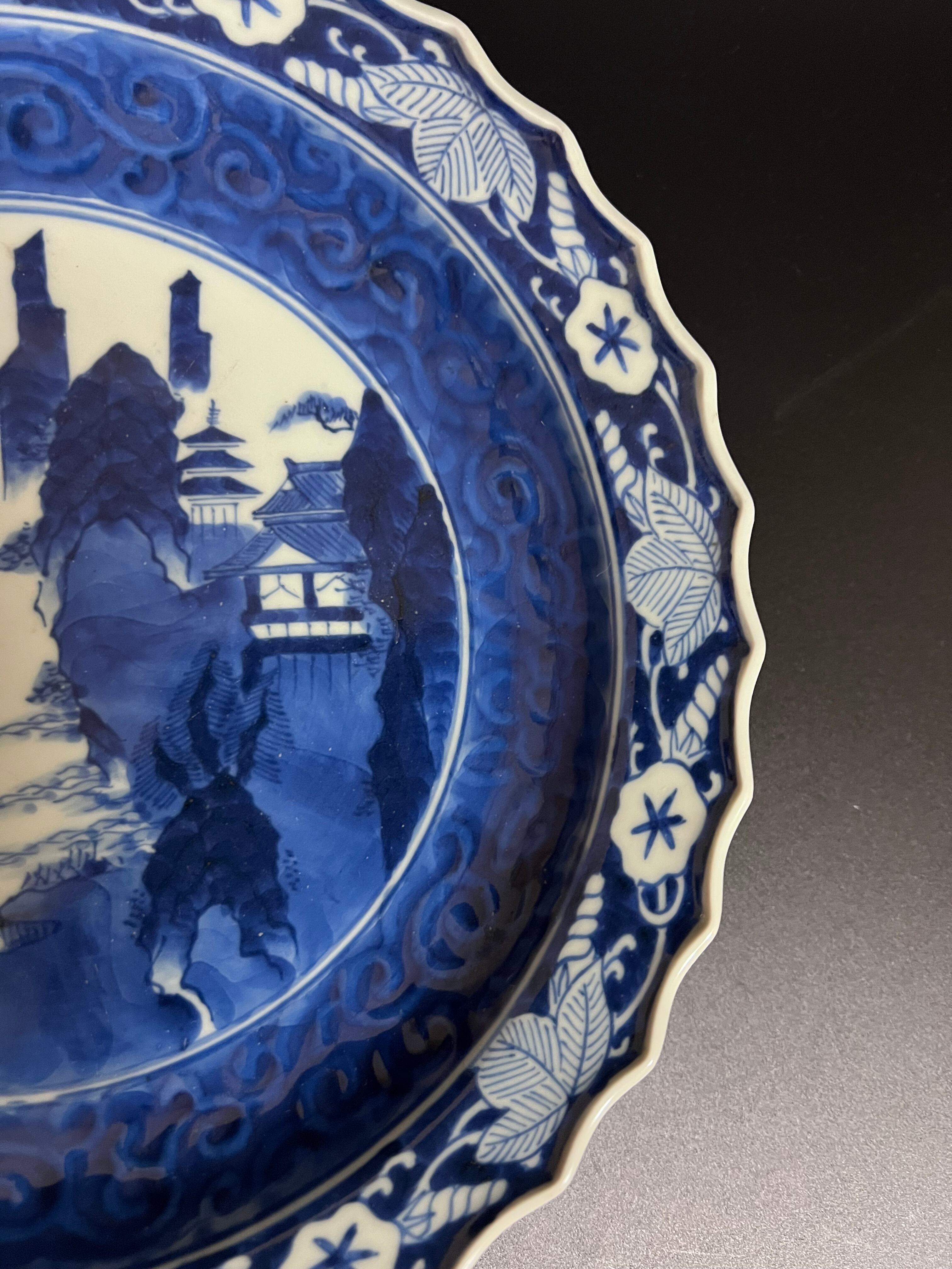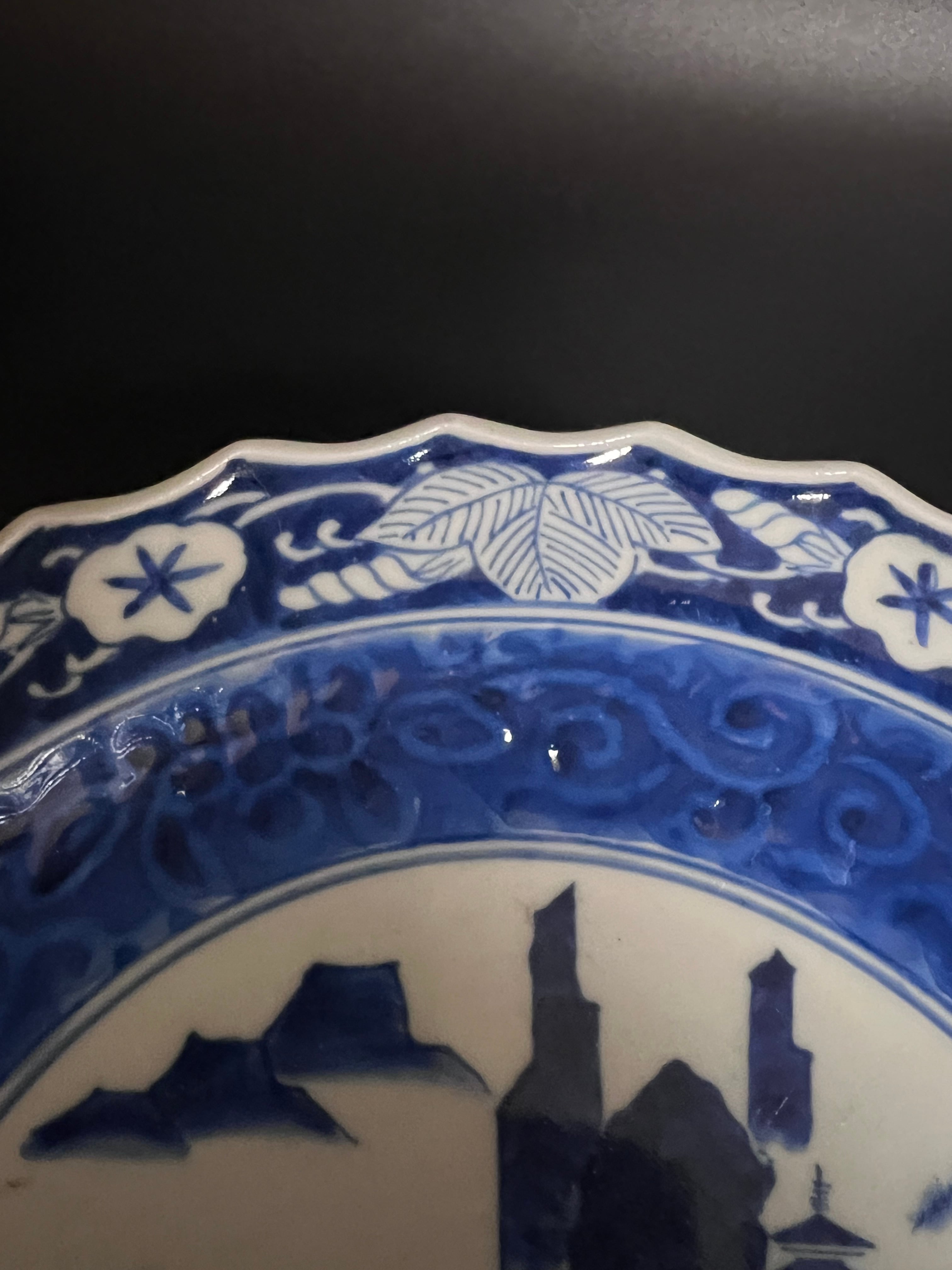高台中皿 染付 山水図