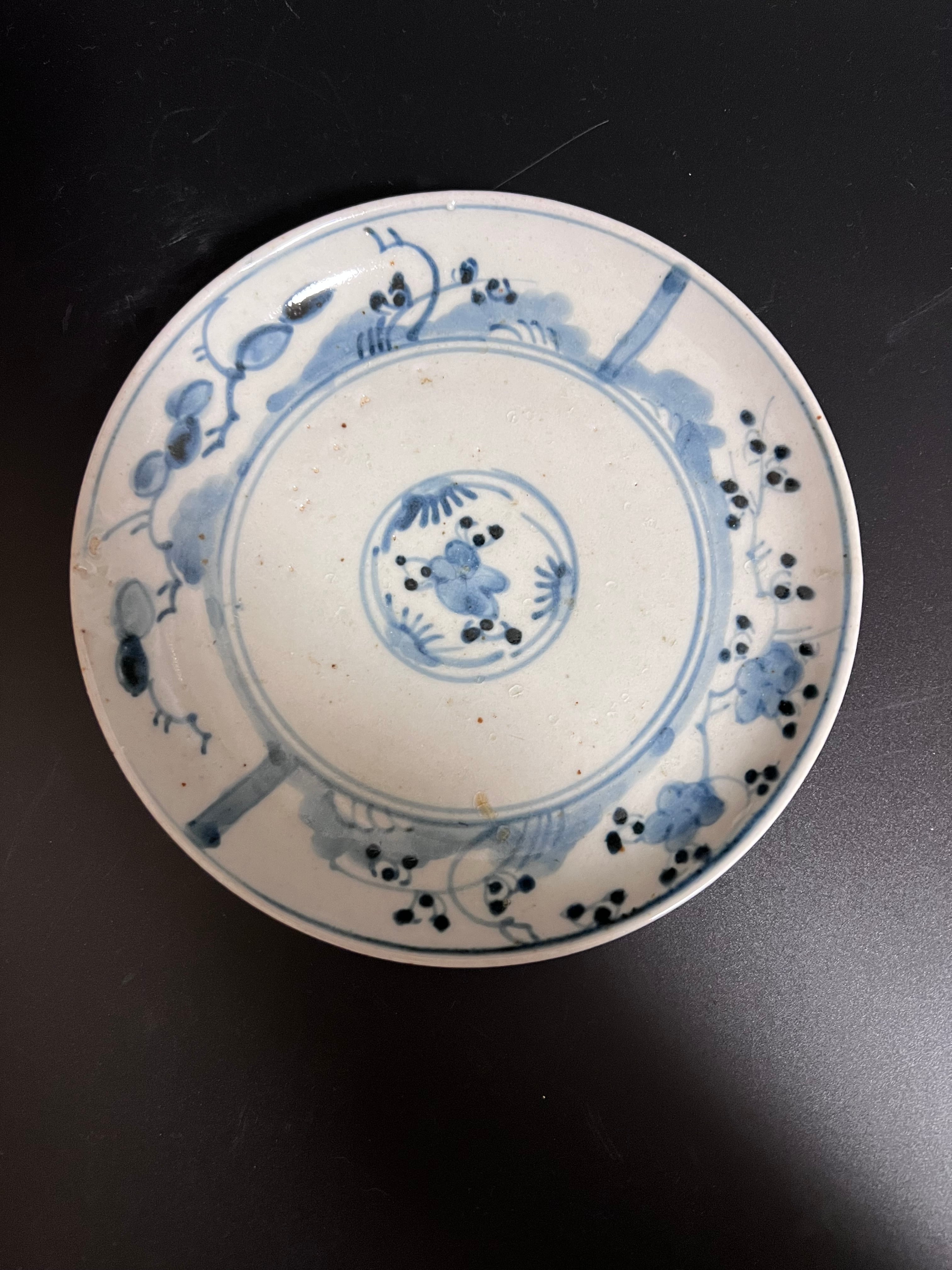 梅と淡い呉須の色が古い歳月を感じさせてくれる美しいお品です。