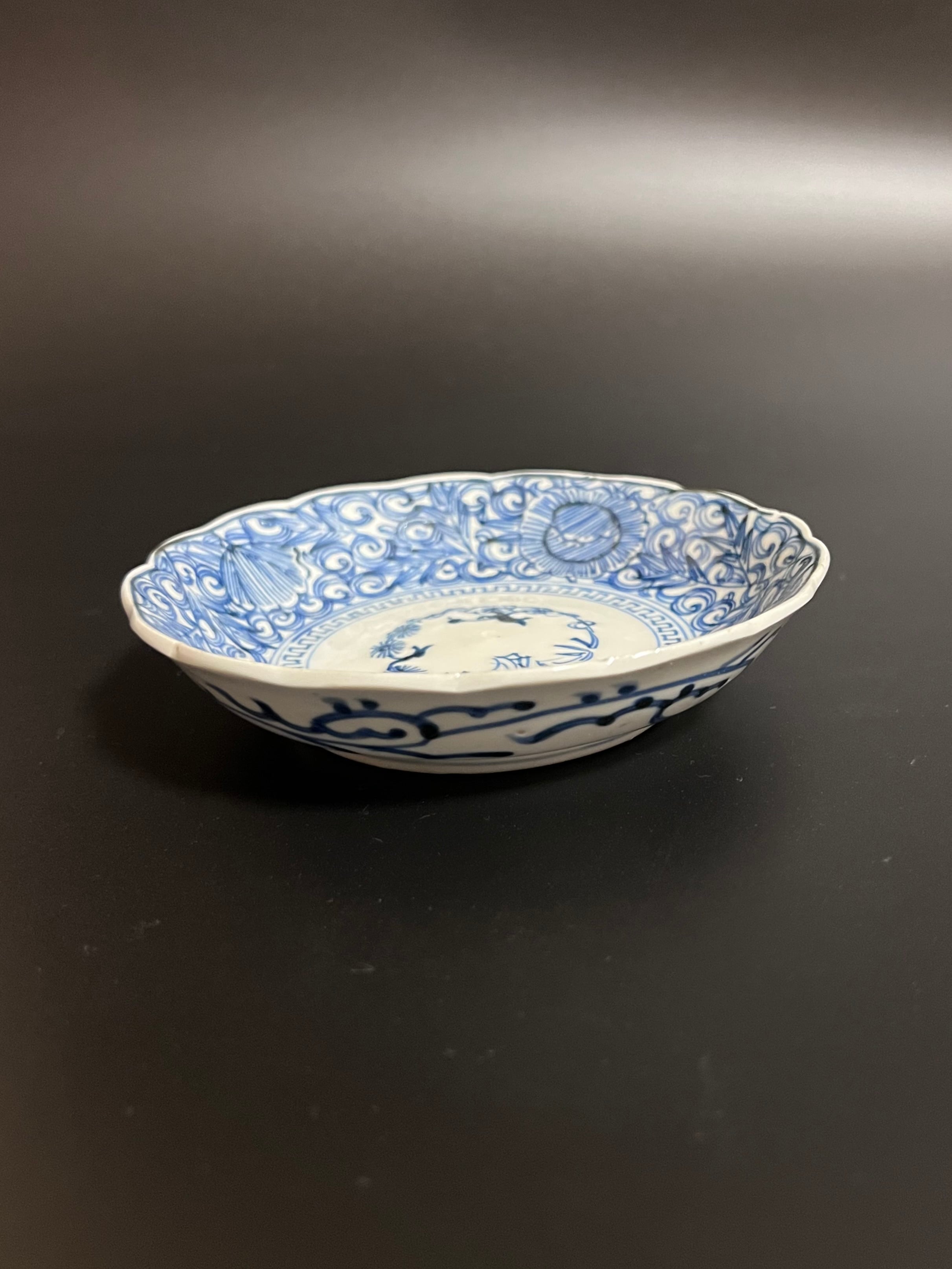 使い勝手のよい大きさの小皿で、なます皿よりもひとまわり小さいながら、アレンジ次第で多様なシーンで活躍します。繊細な線描の染付が施されており、食卓に上品さを添える素敵なお品です。
