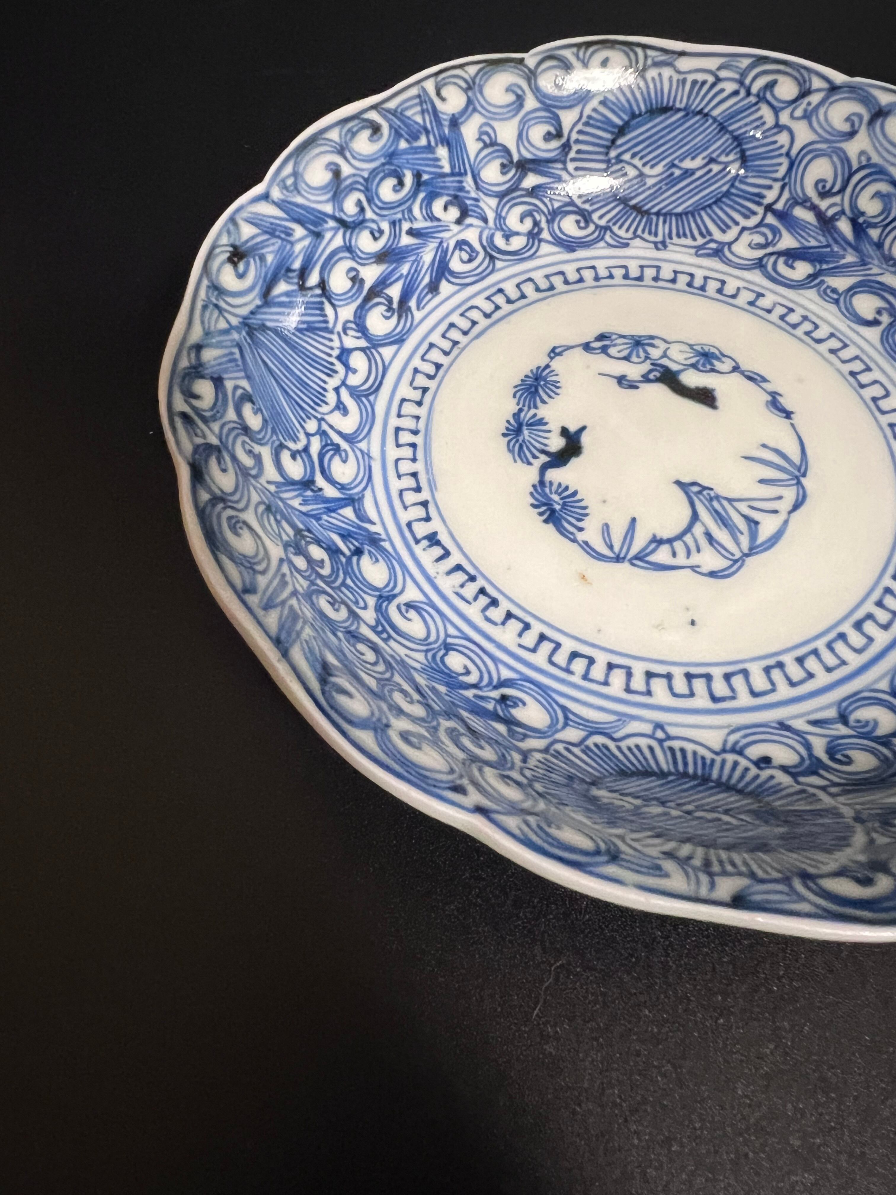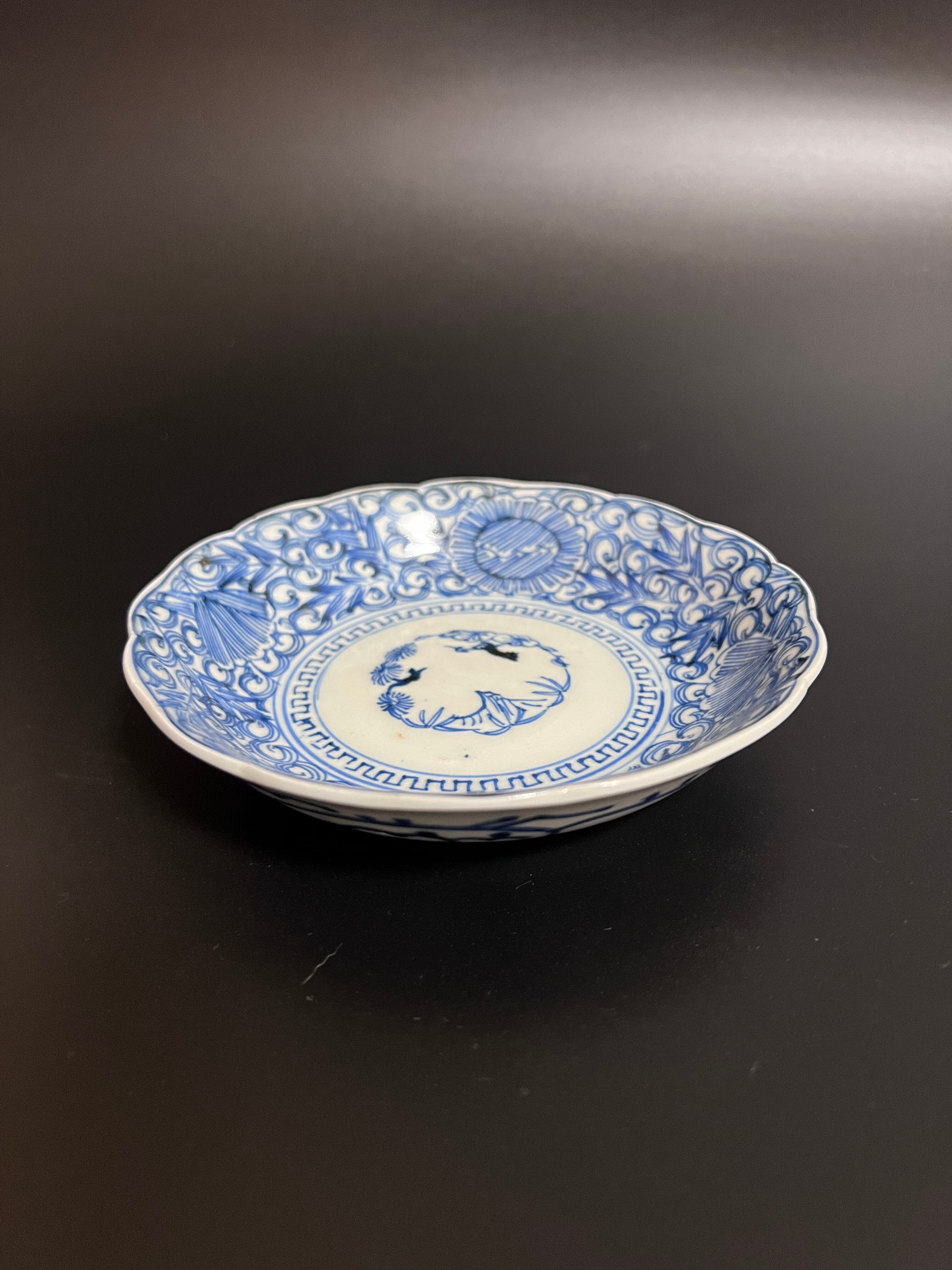使い勝手のよい大きさの小皿で、なます皿よりもひとまわり小さいながら、アレンジ次第で多様なシーンで活躍します。繊細な線描の染付が施されており、食卓に上品さを添える素敵なお品です。