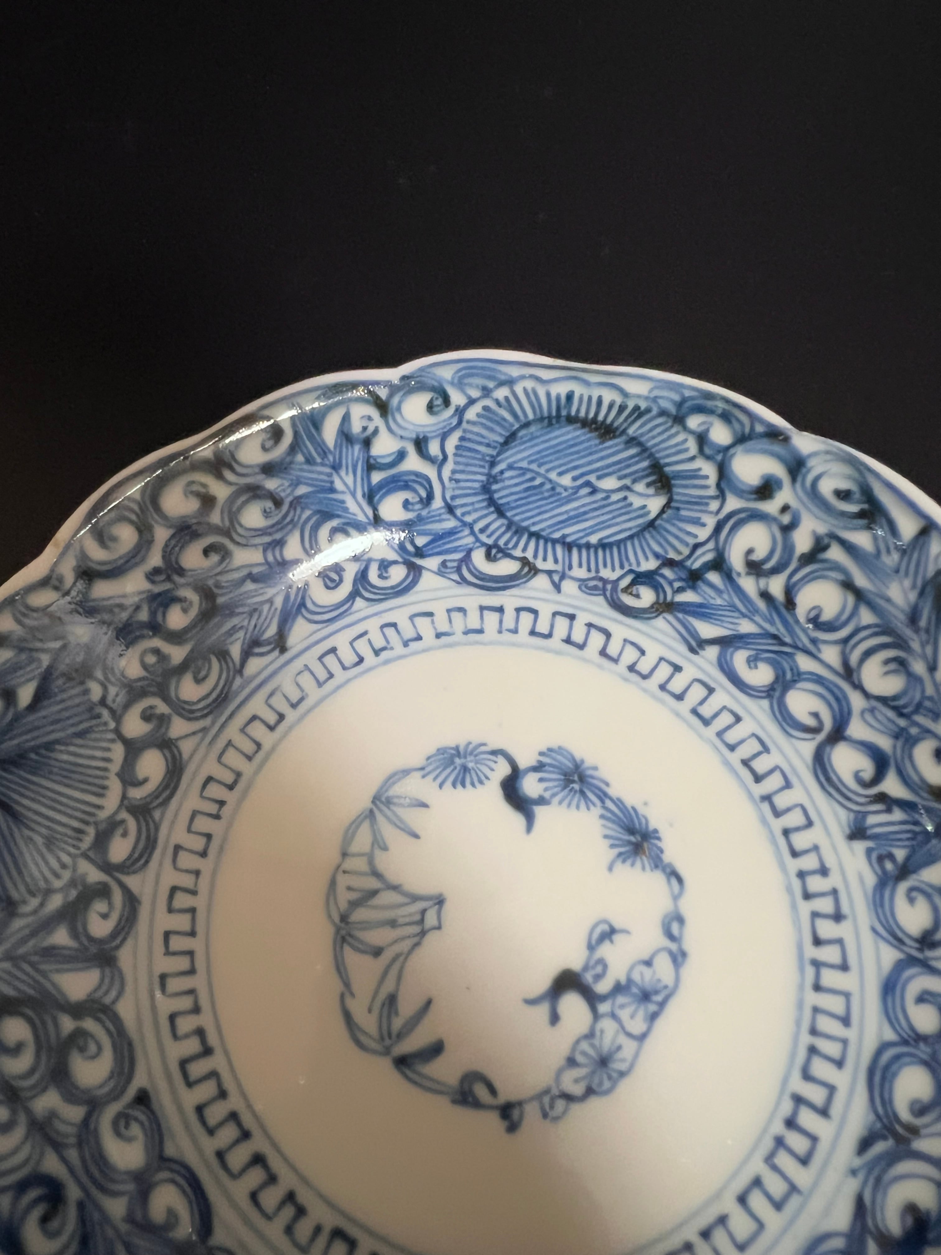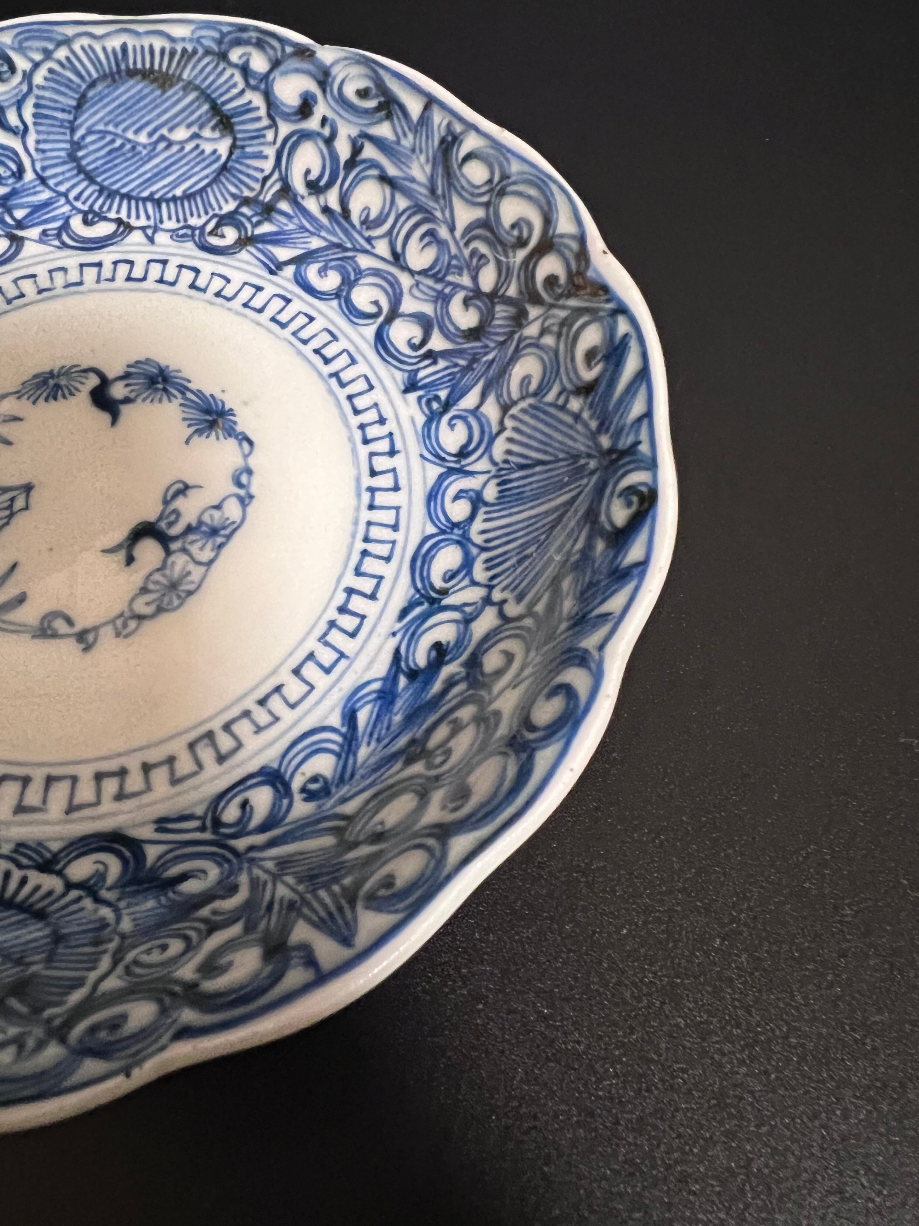 使い勝手のよい大きさの小皿で、なます皿よりもひとまわり小さいながら、アレンジ次第で多様なシーンで活躍します。繊細な線描の染付が施されており、食卓に上品さを添える素敵なお品です。