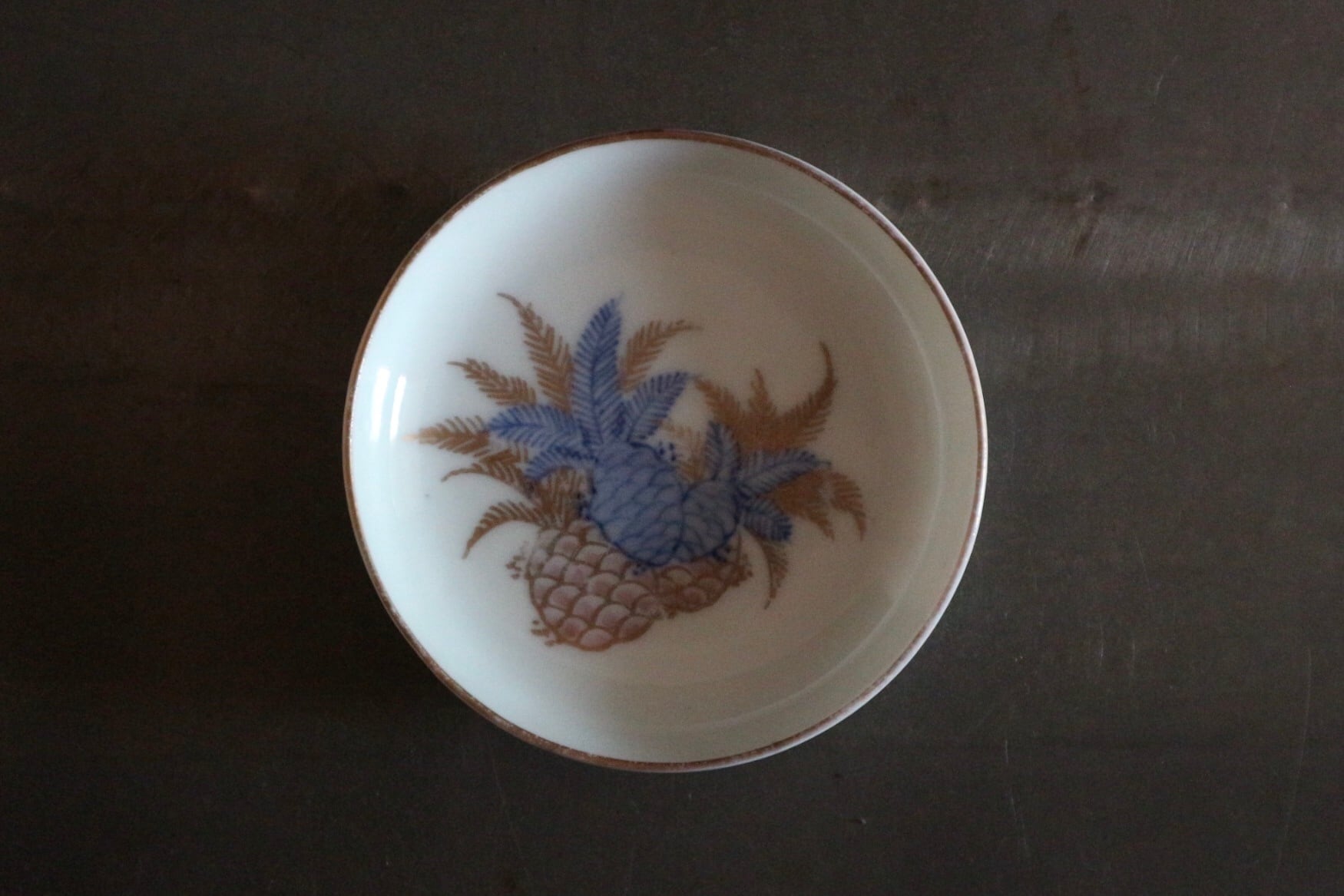 表には松毬、裏には松竹梅が描かれた、可愛いまめ皿です。