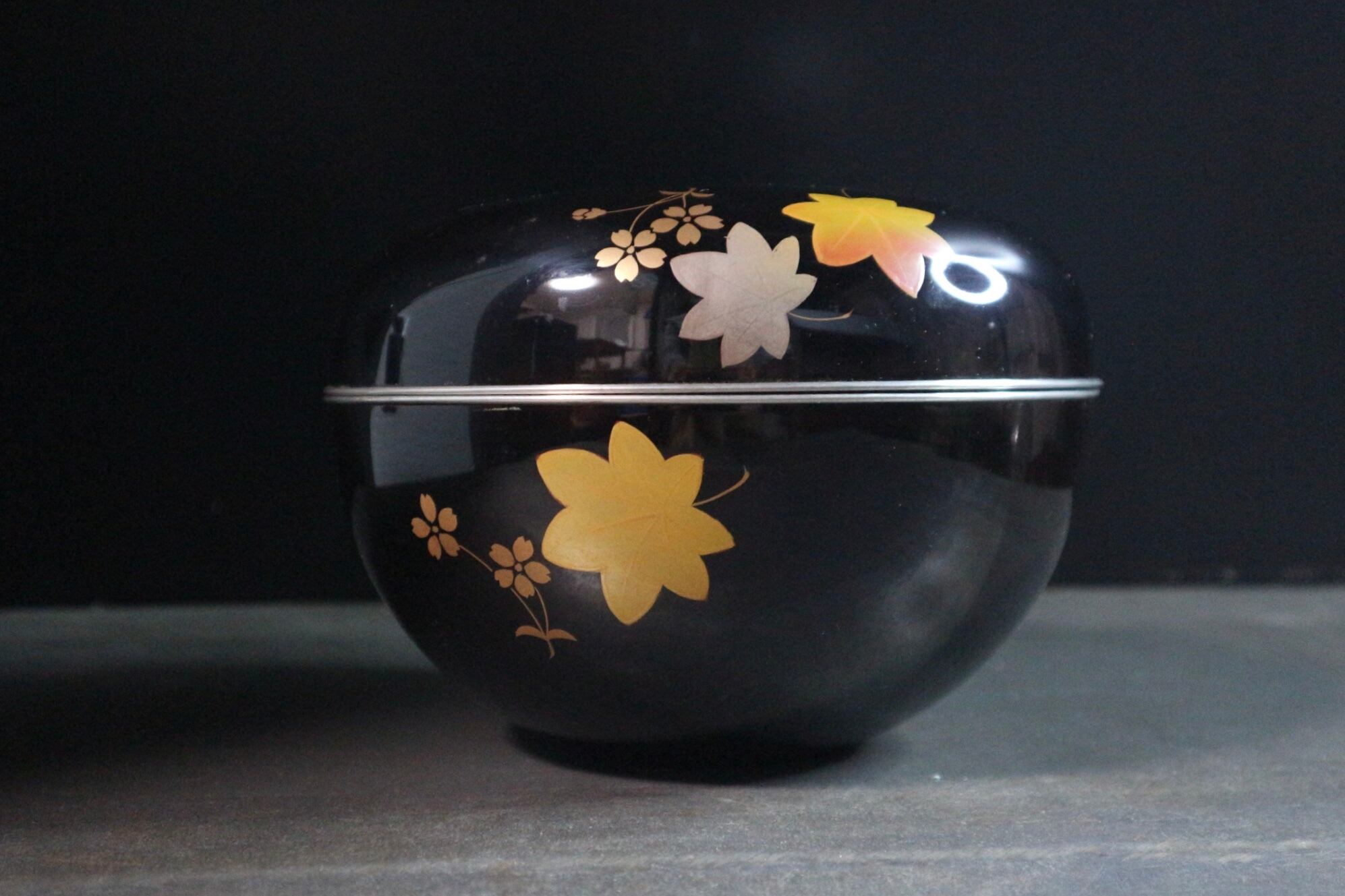 桜と楓が描かれた、一年中お使いいただける菓子鉢です。