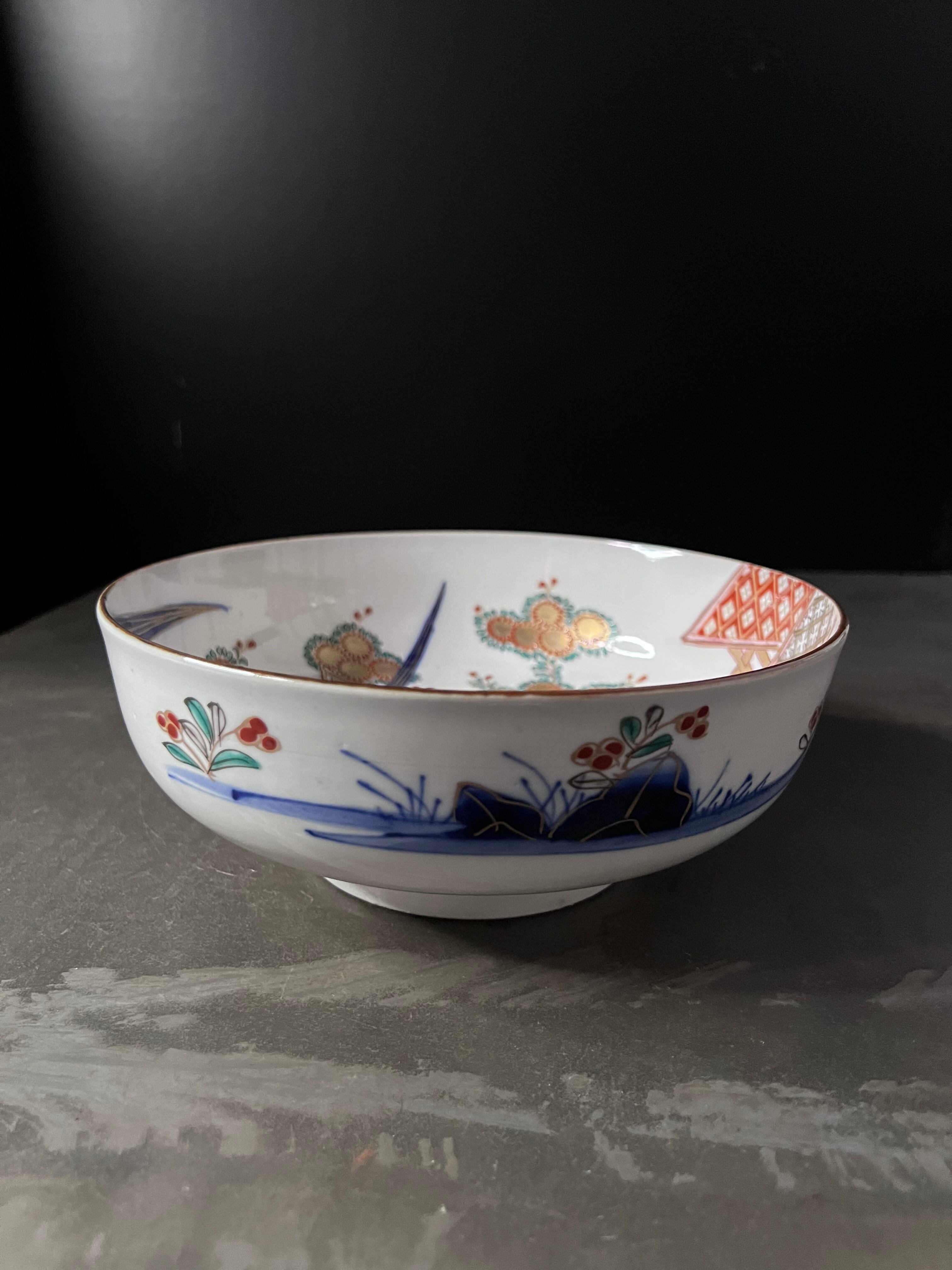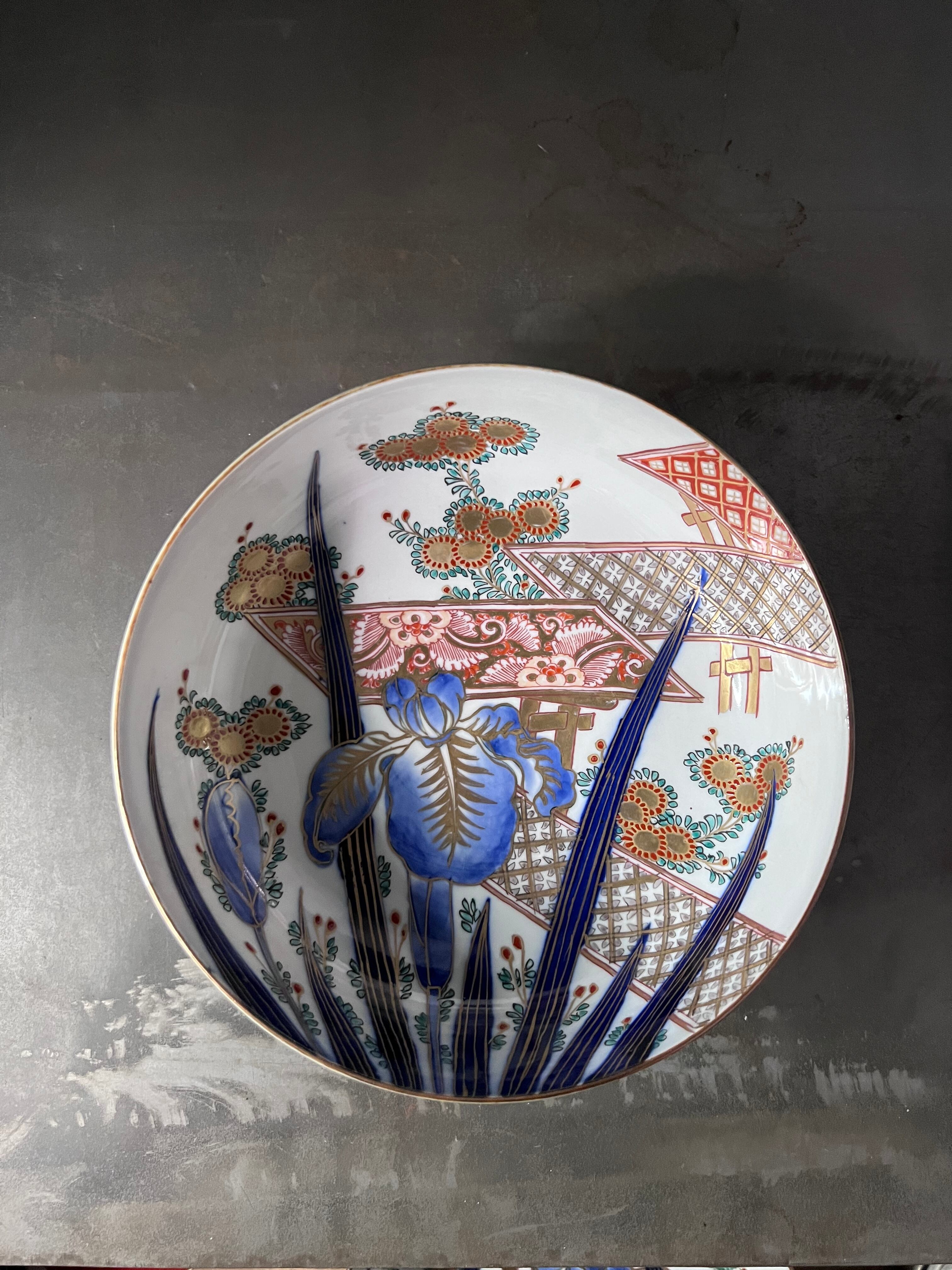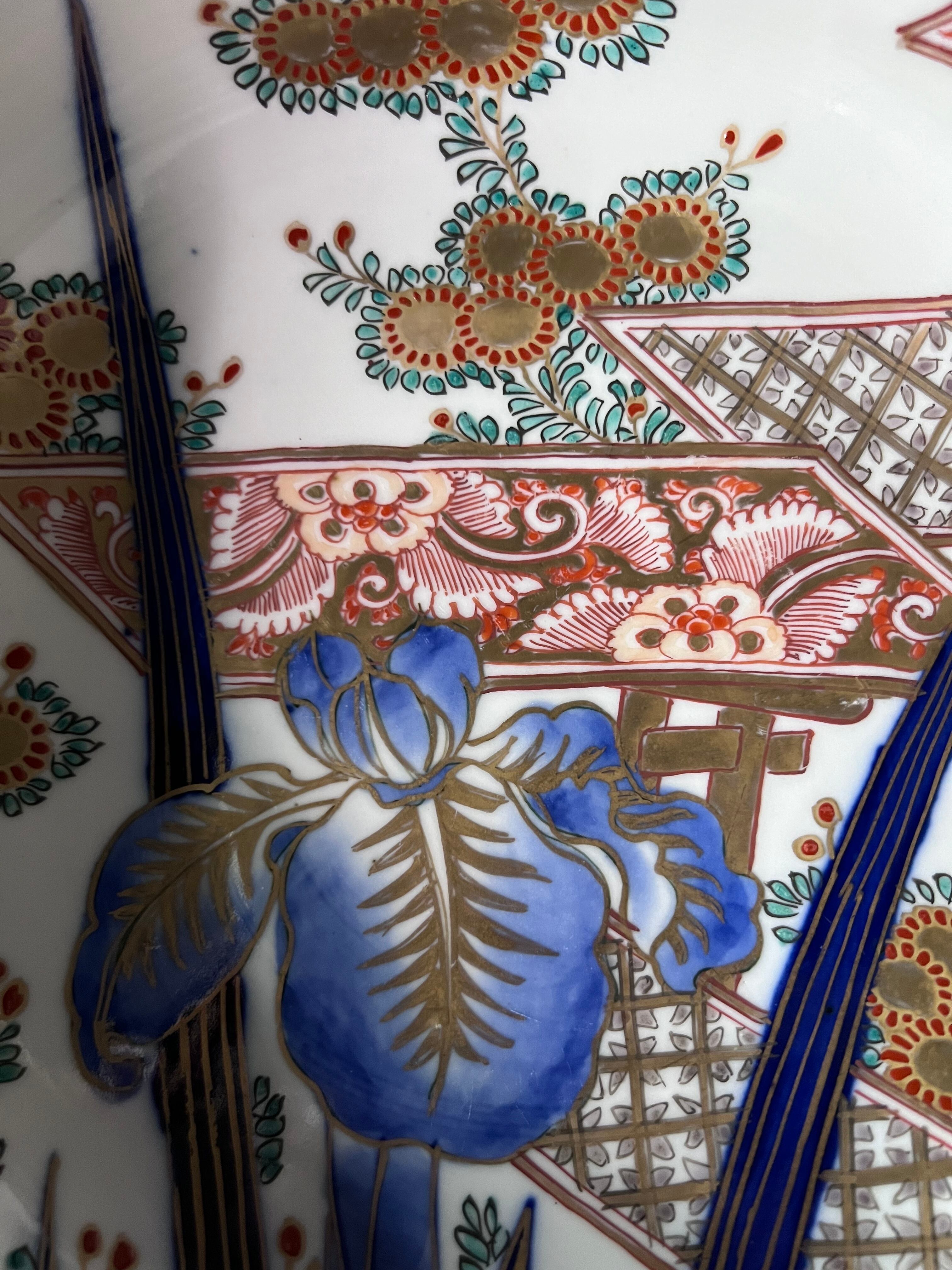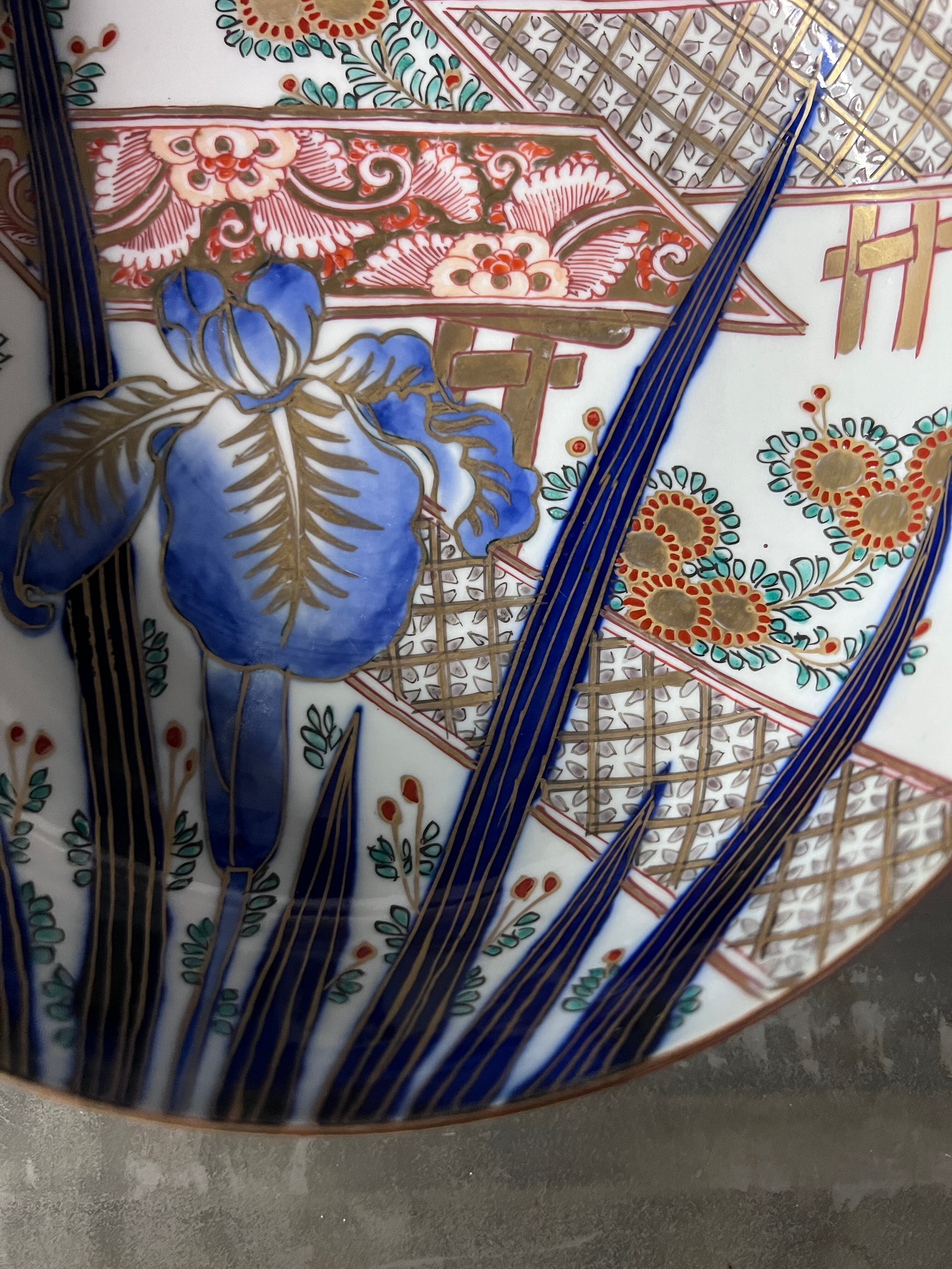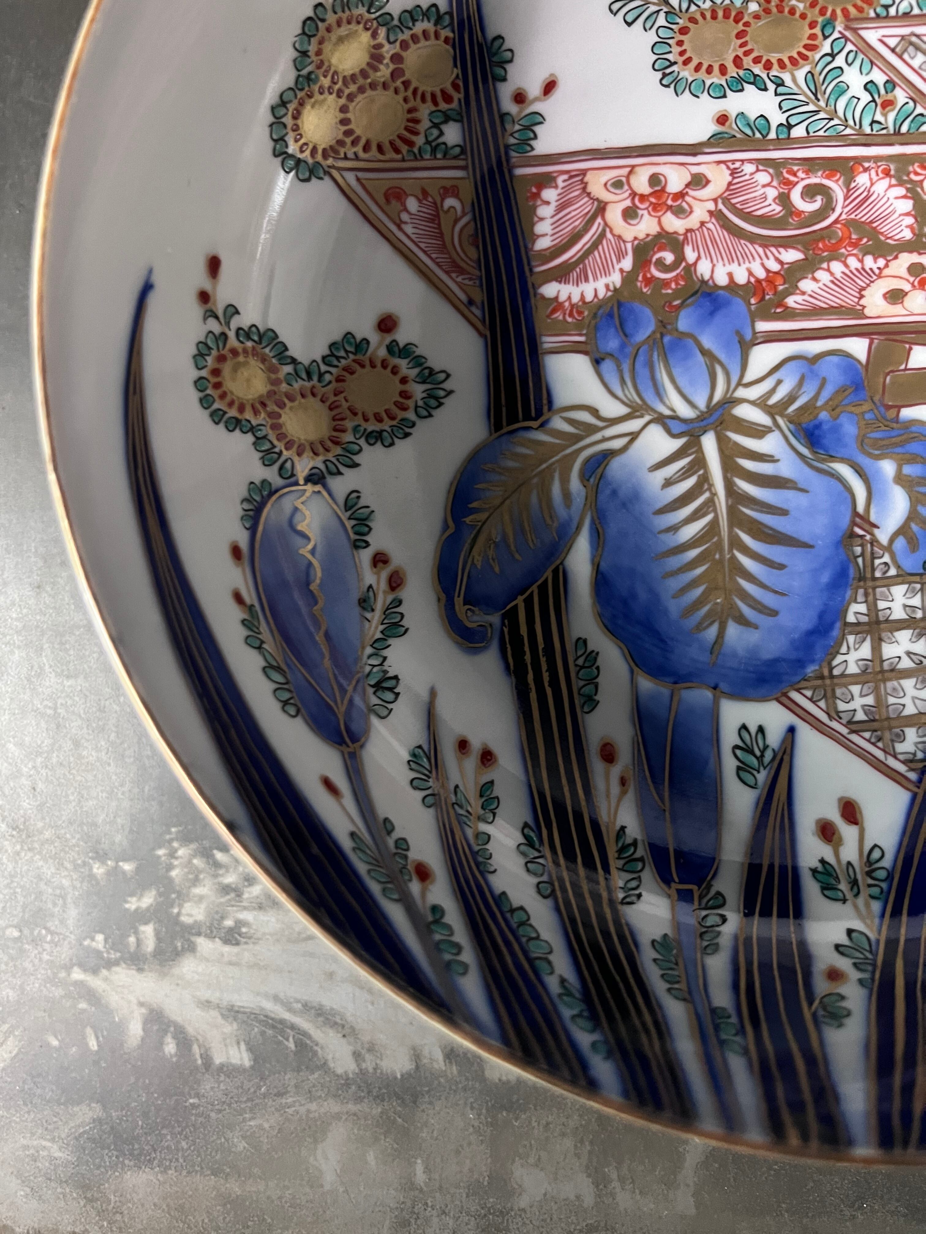 存在感のある菖蒲に細かく丁寧に描かれ草花文が可愛い、状態の良い美しいお品です。