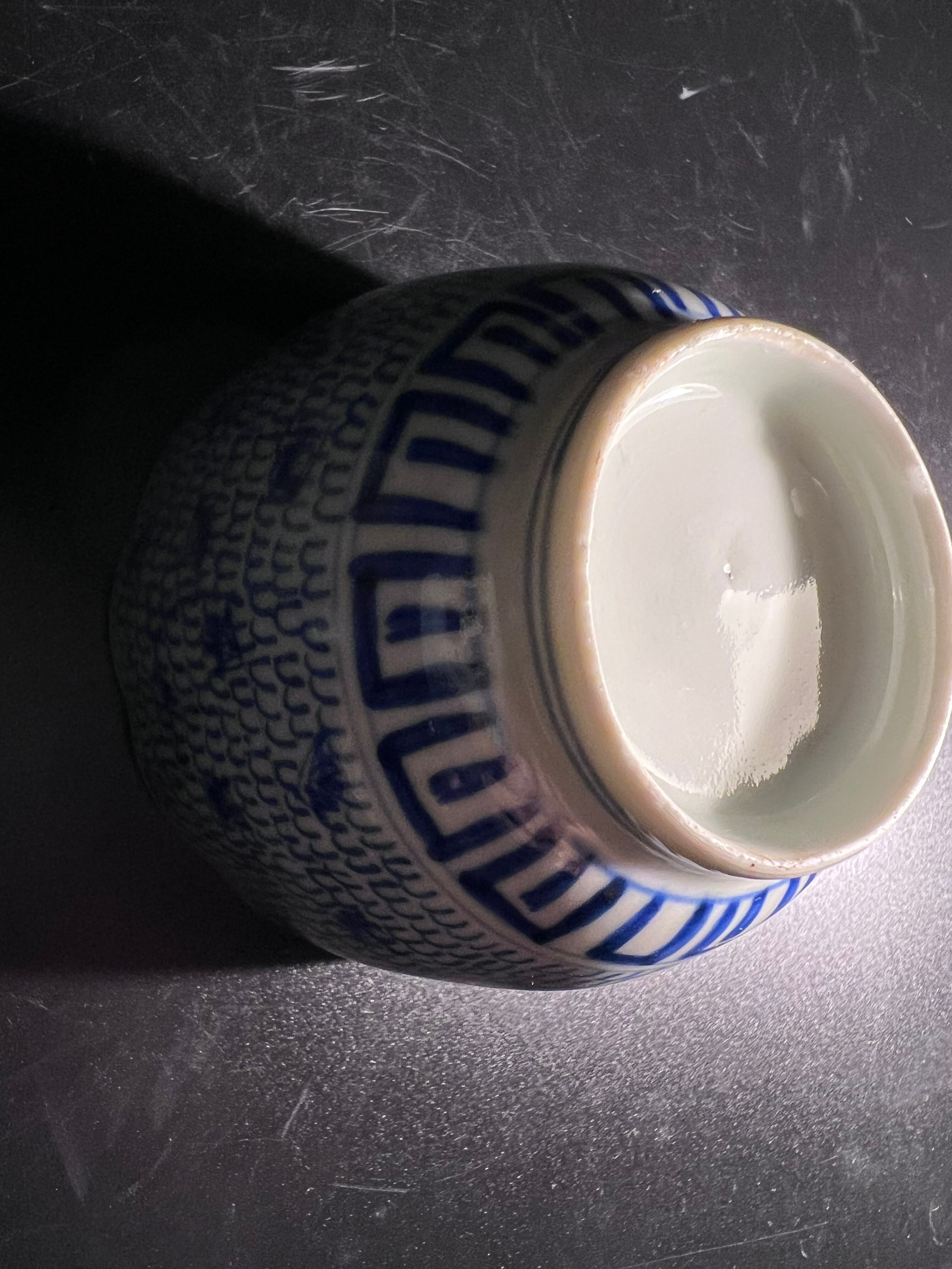 丁寧に描かれた微塵唐草が美しい染付のお品です。