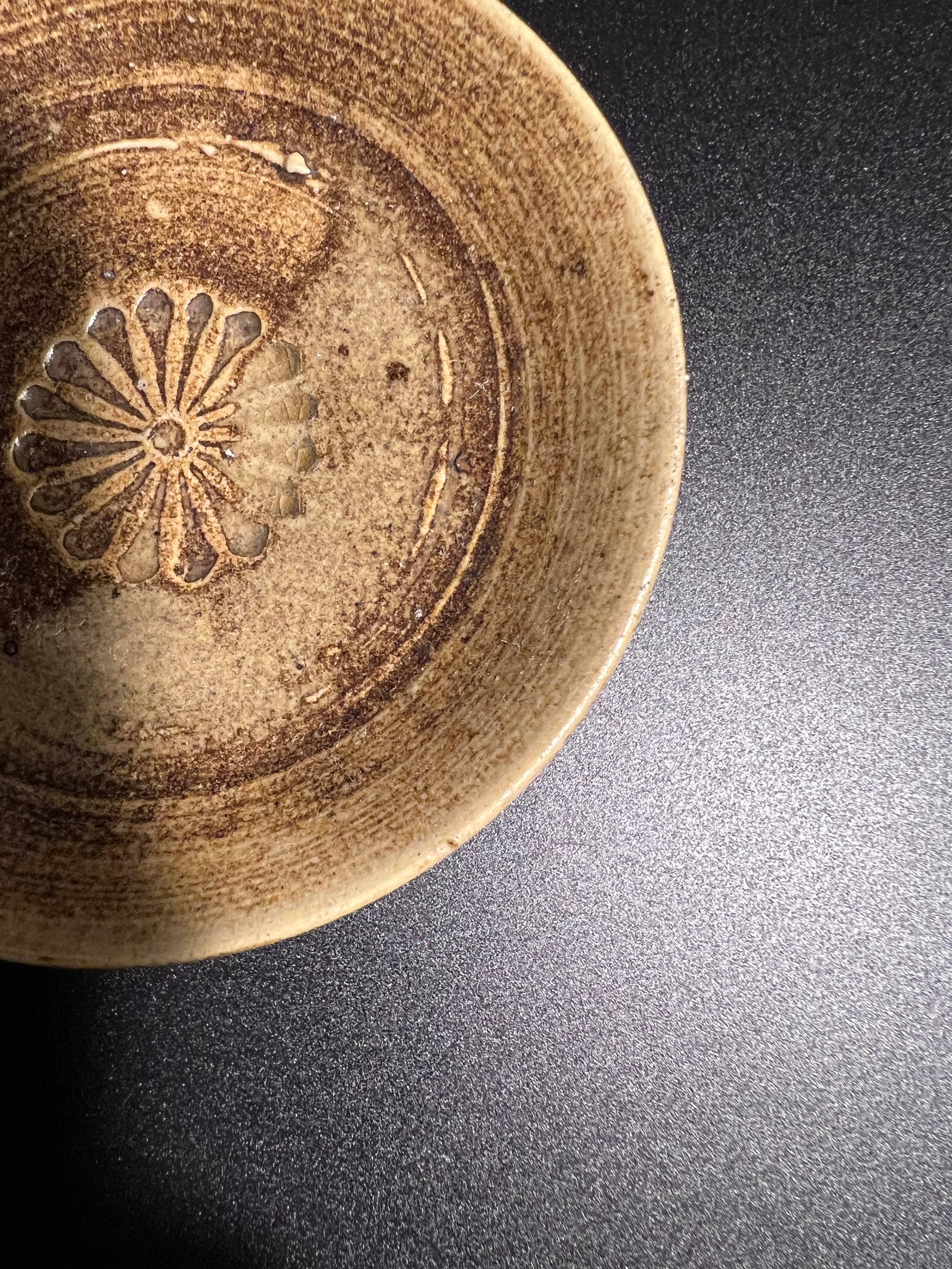 菊の文様が陽刻させた、素朴な風合いが美しいまめ皿です。